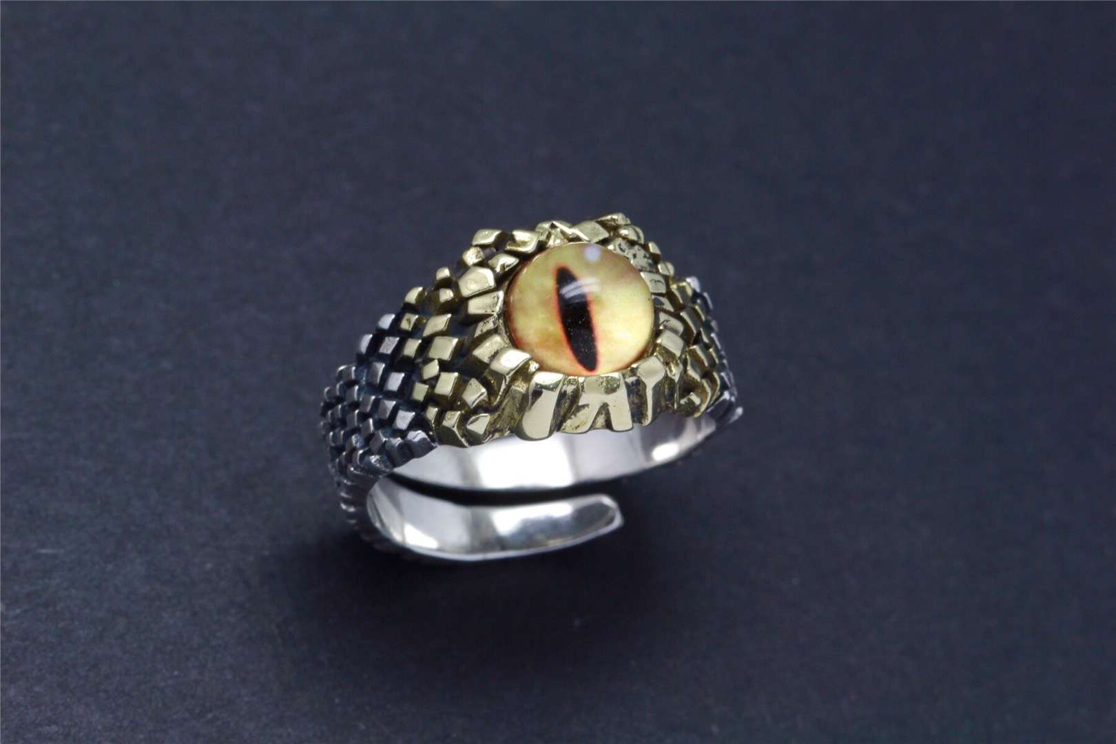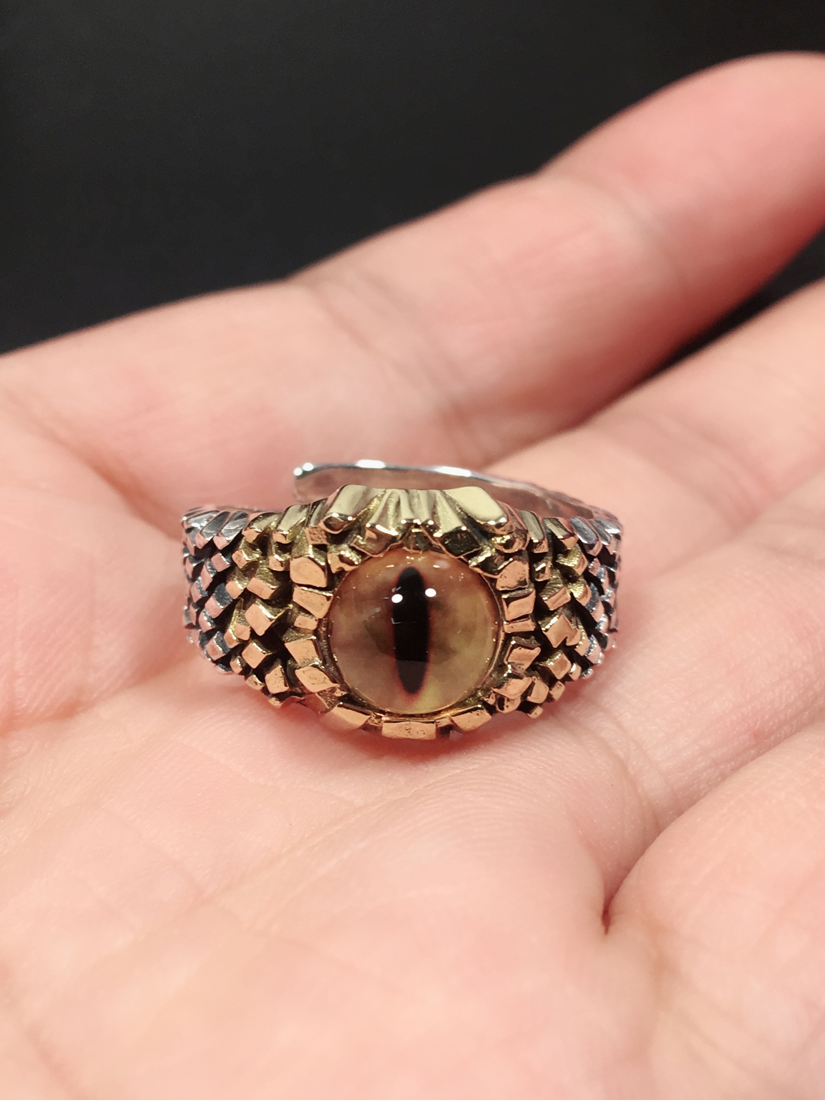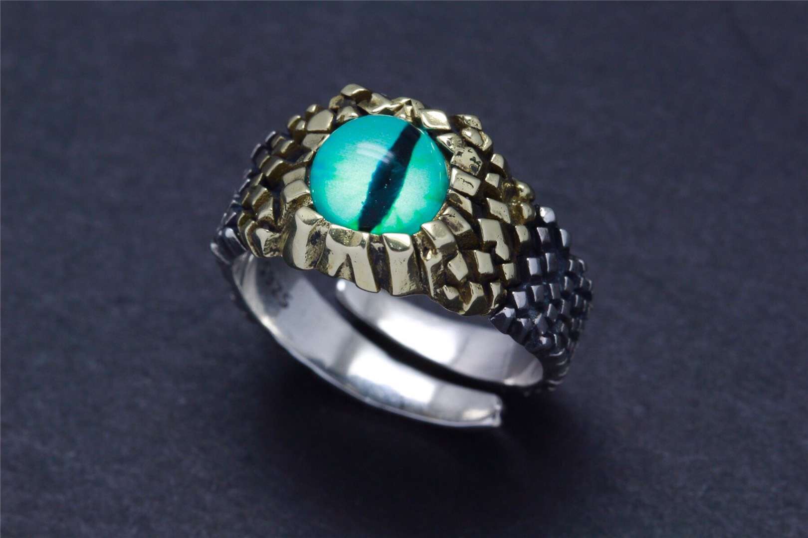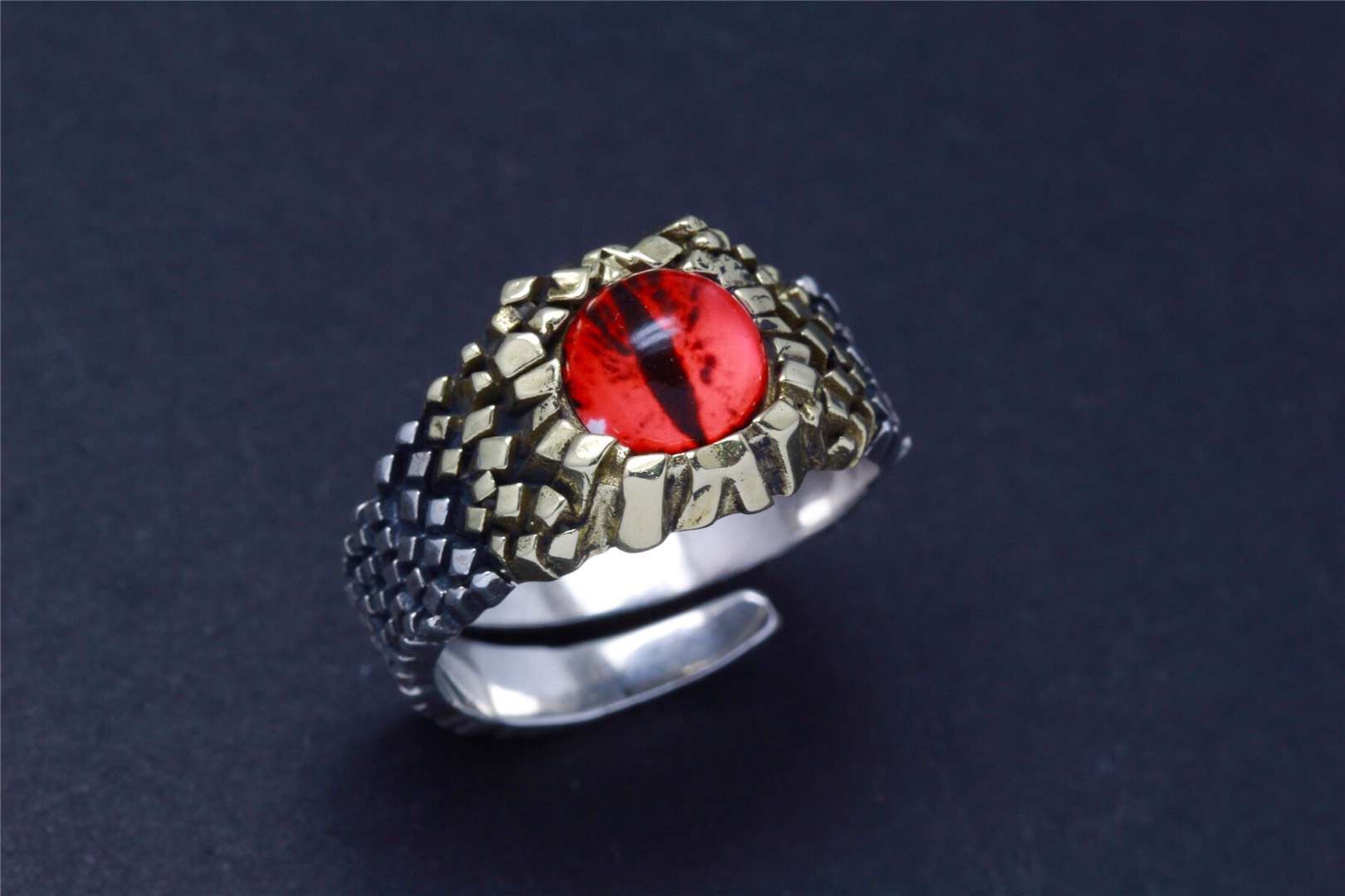 Fashionable and Versatile Python Devil's Eye Snake Eye Ring Opening Personalized Trendy Men's Ring Inlay