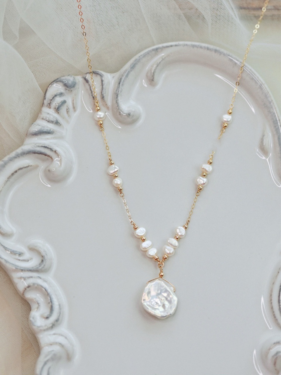 Color: Sgl44-1 natural pearl petal clavicle chain