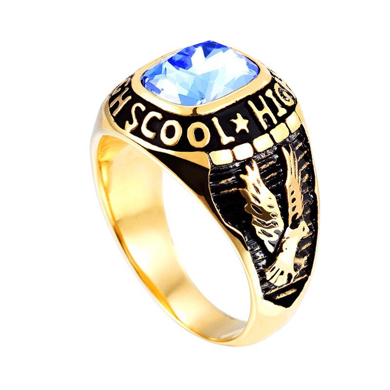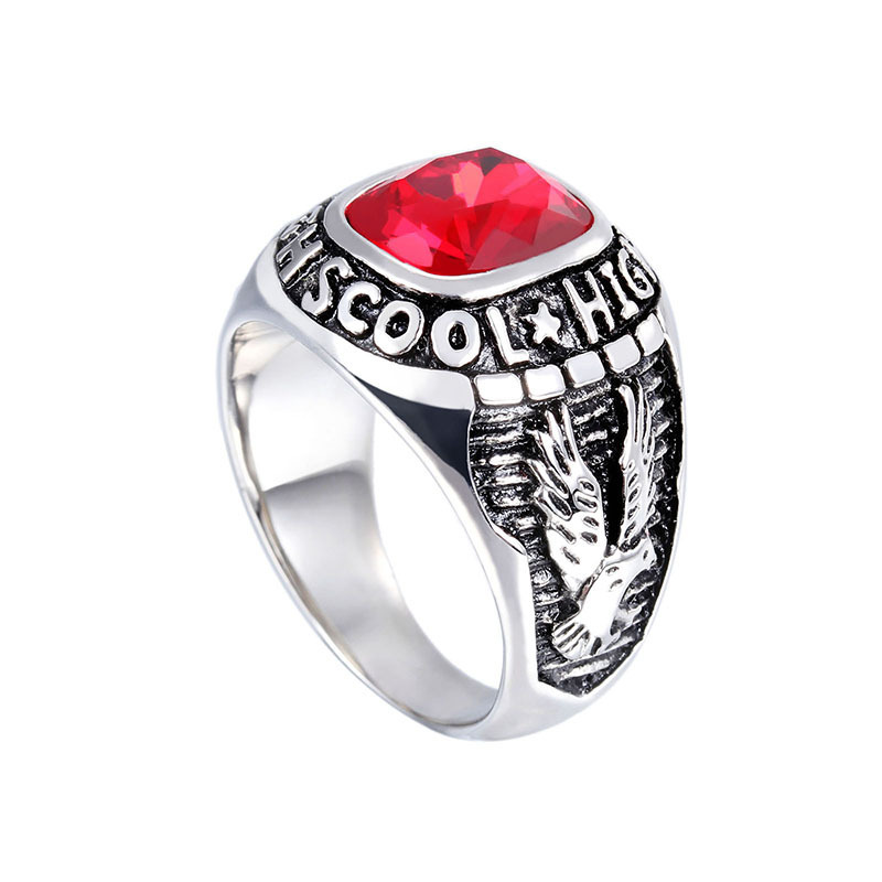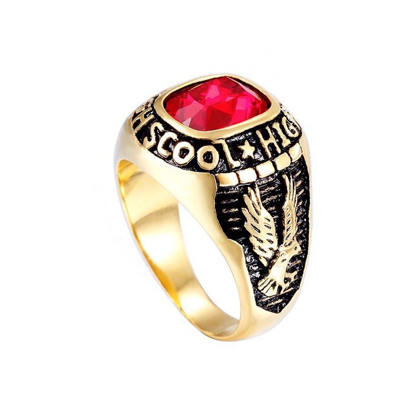 Huajie European and American Alloy Ring American Soldier Retro Eagle Inlaid Red, Blue, Black and Emerald Ring Factory Direct Sale