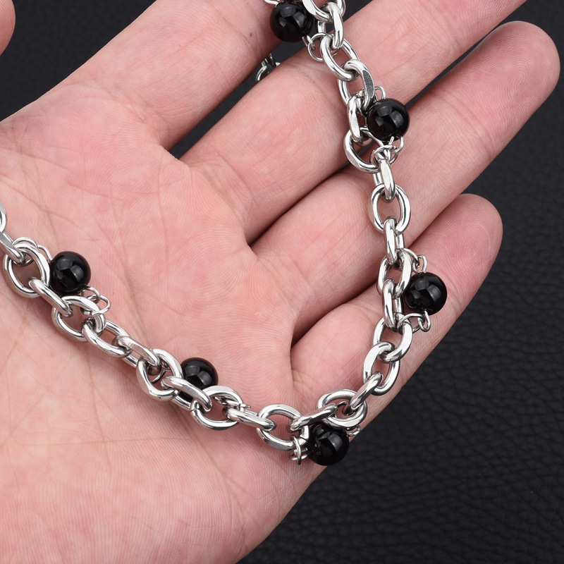 材质:不锈钢材质 不会褪色 黑玛瑙珠