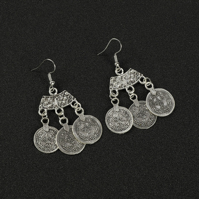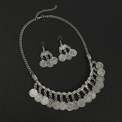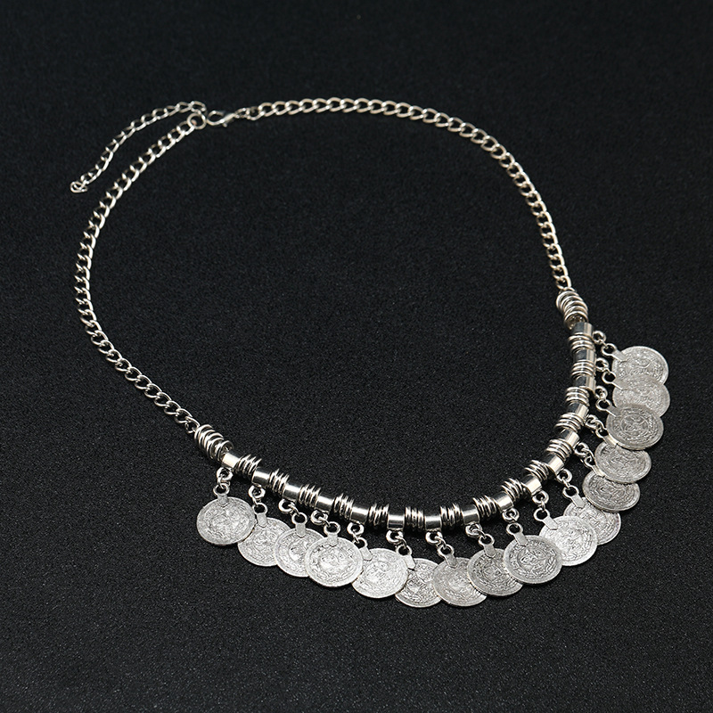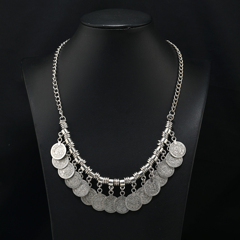 European and American jewelry retro ethnic style silver coin necklace clavicle chain tassel pendant holiday bohemian female fashion