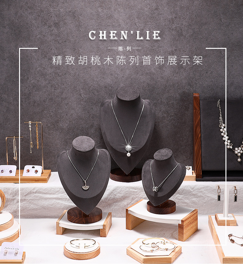 Walnut necklace display stand: Walnut classy necklace display stand jewelry display props jewelry display stand jewelry counter props