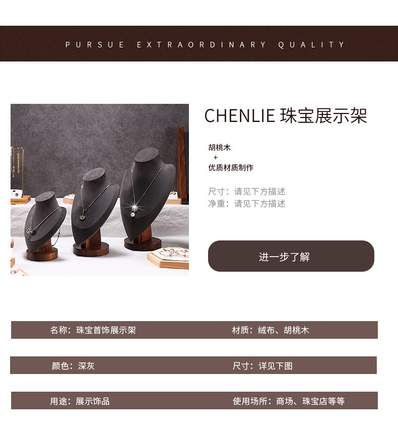 Walnut Figure Neck Display Stand Neck Mold Necklace Model Stand Jewelry Display Stand Pendant Hanger Window Props