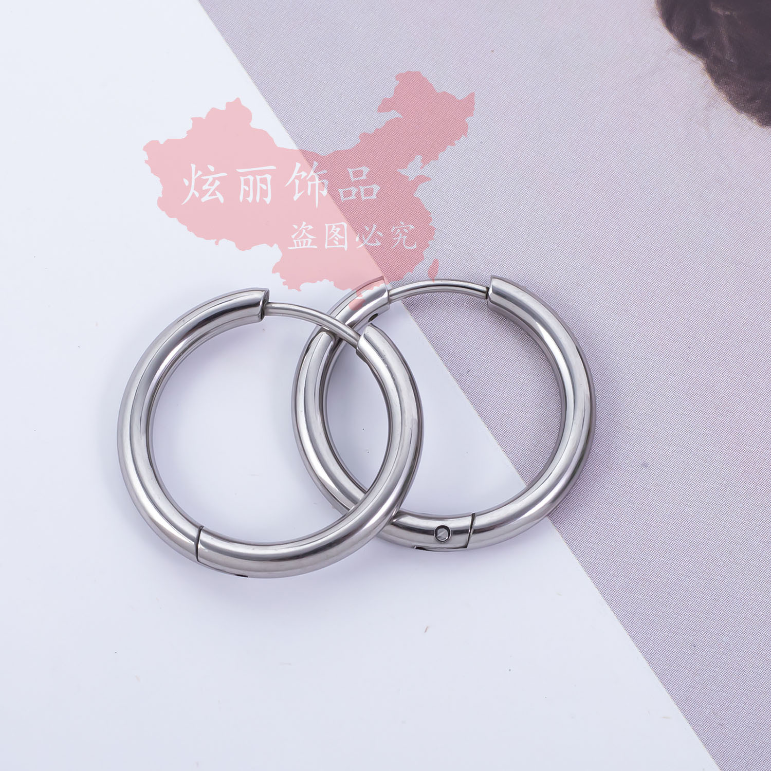 【商品名称】:欧美圆圈线不锈钢耳环时尚简约钛钢耳扣男女款耳圈首饰品