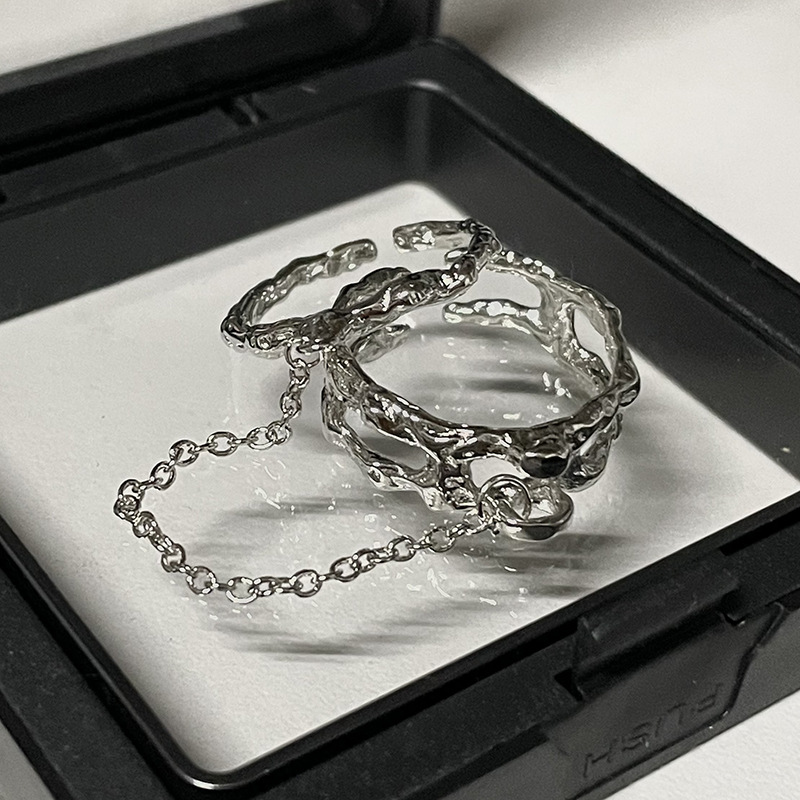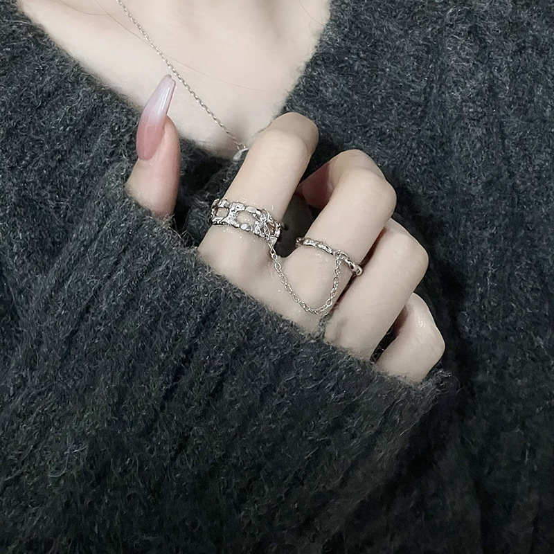 [Silver Chain Whispers] Niche Design Chain High-End Ins Style Asymmetrical Texture Opening Simple Ring