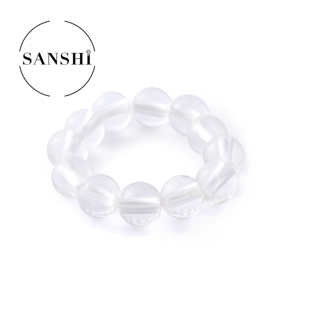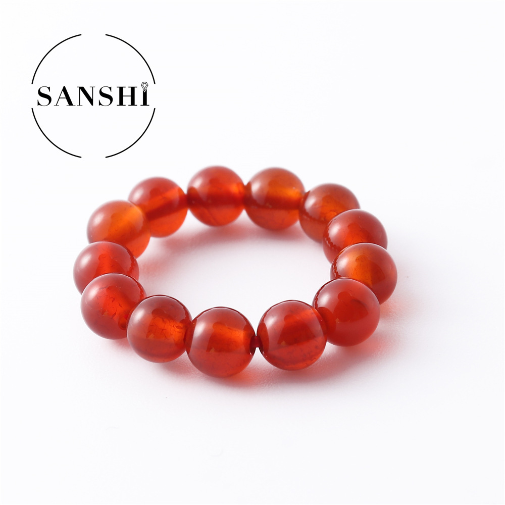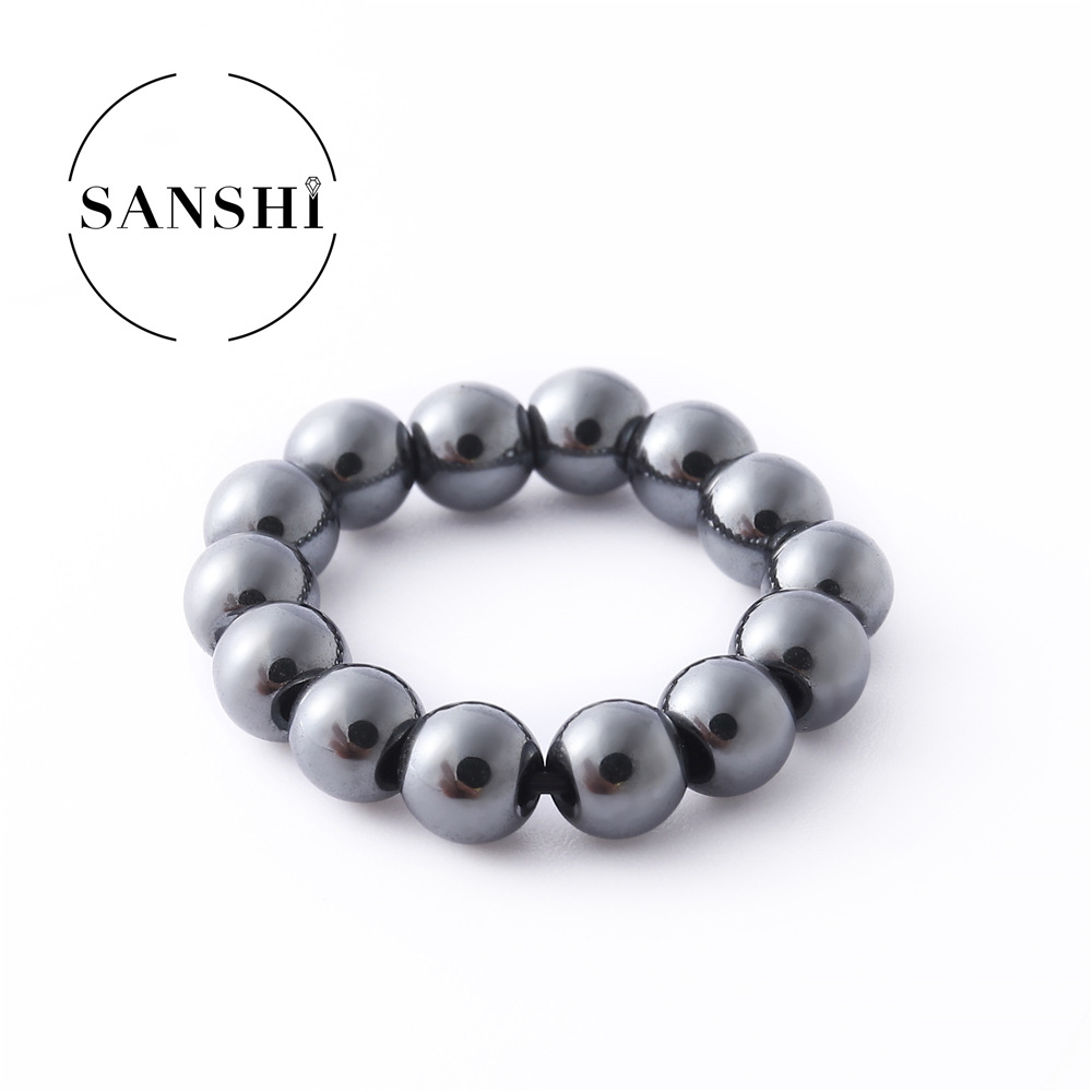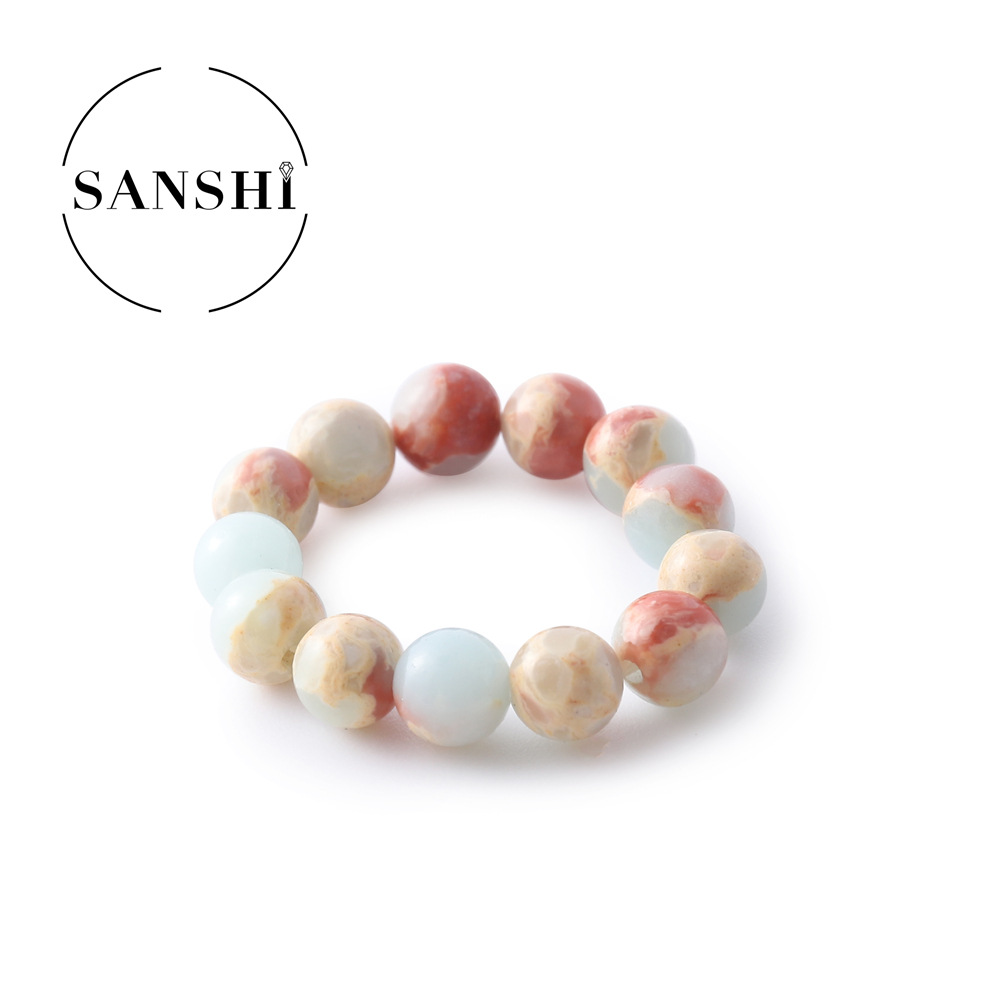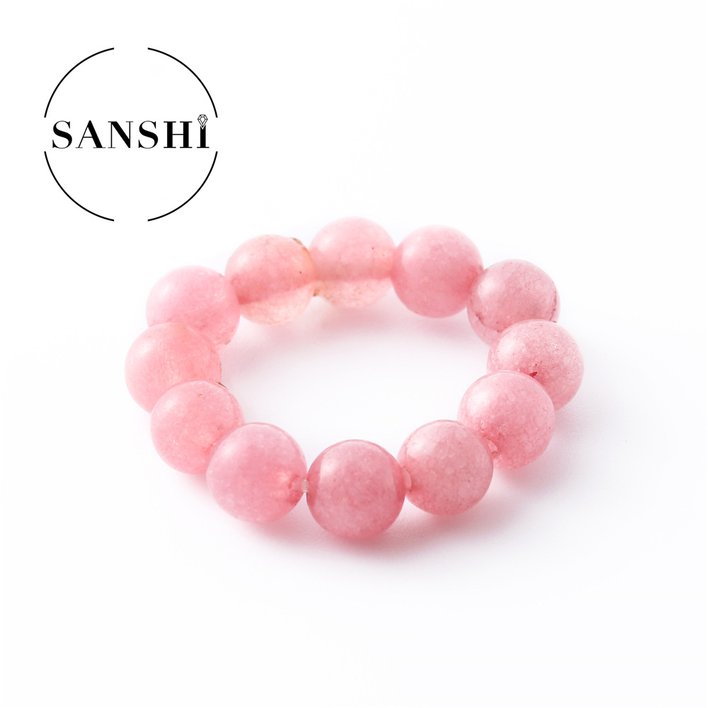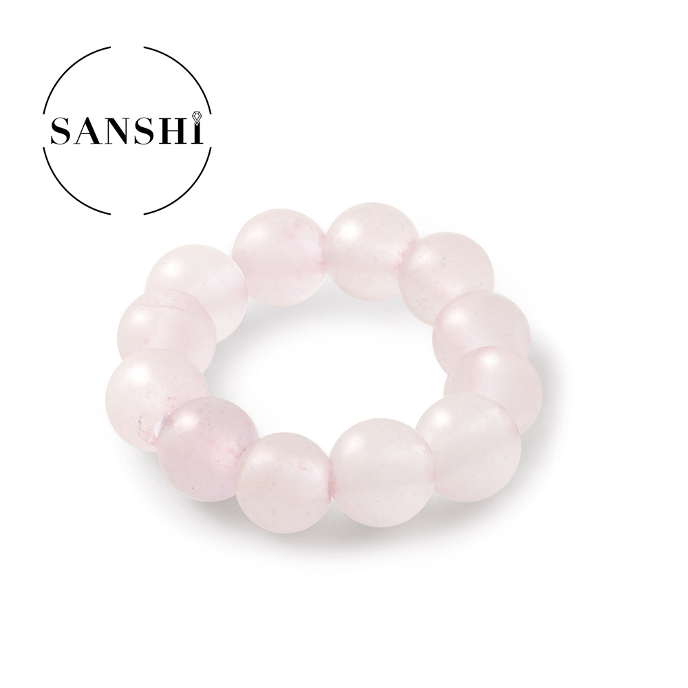 European and American natural stone colorful rice beads elastic ring plain ring beaded index finger ring round beads cold wind ring