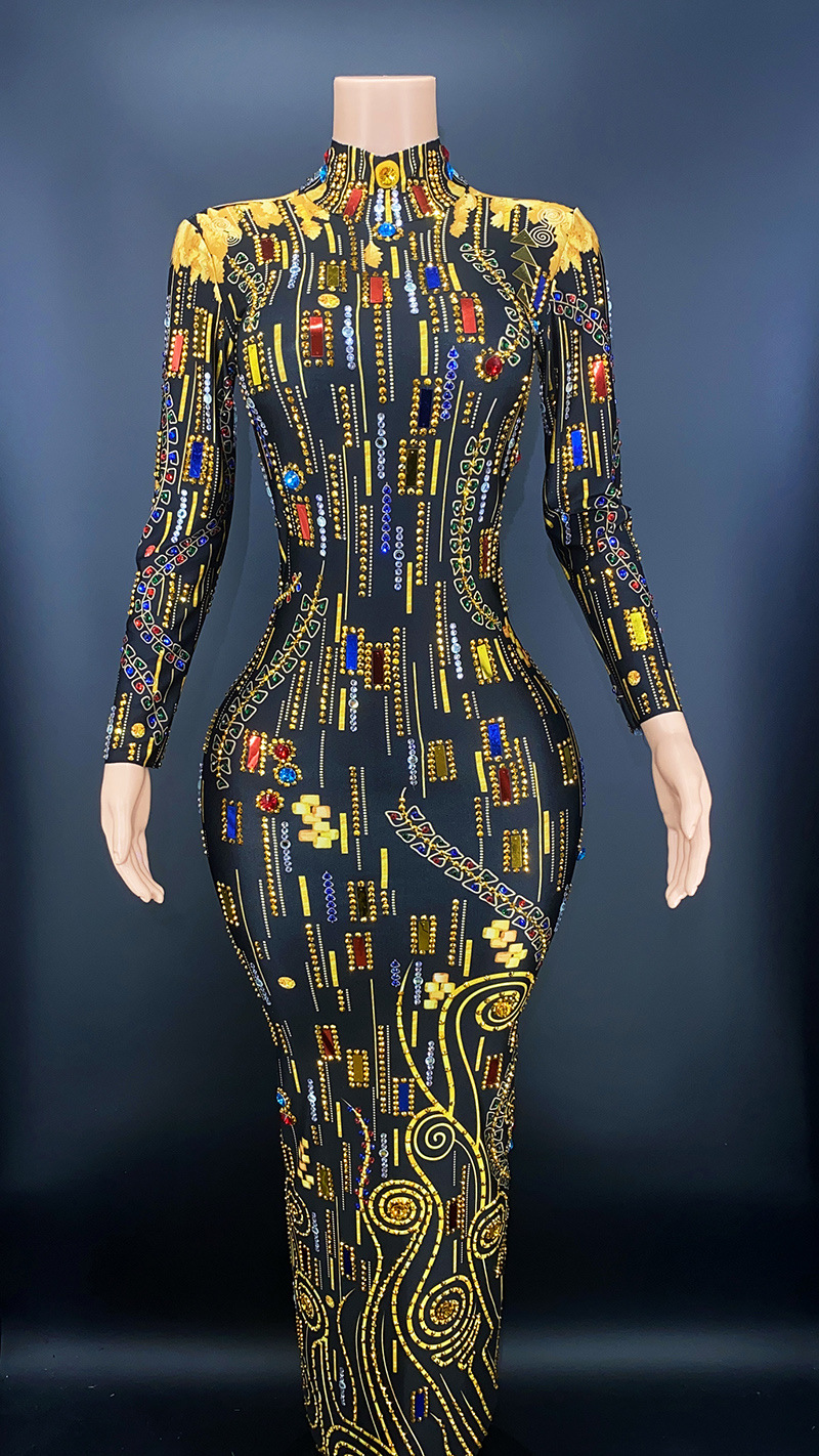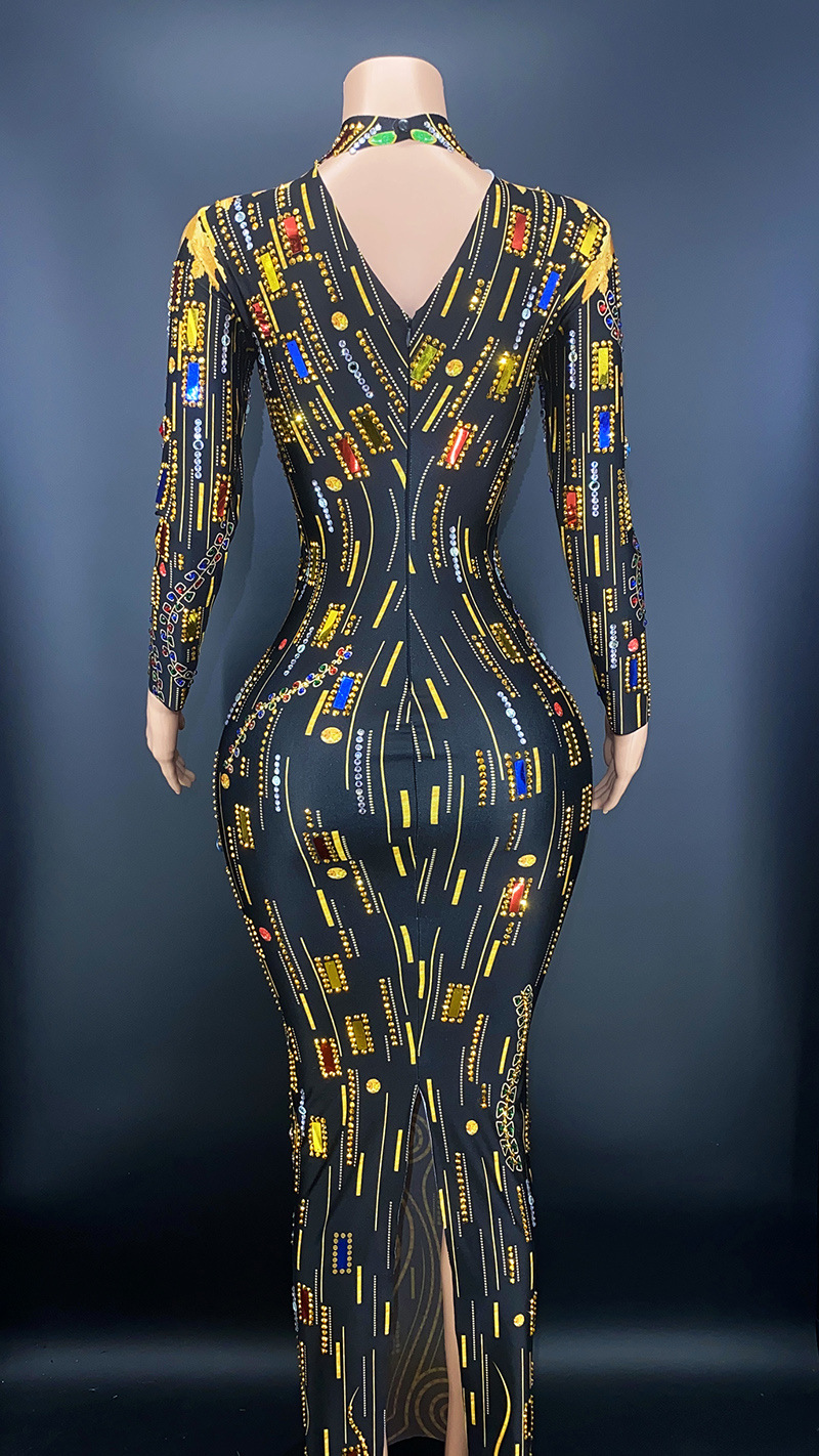 2024 Shiny Diamond Sequin Long Dress Dubai Luxurious Design Diamond Elegant Dress Long Sleeve Party