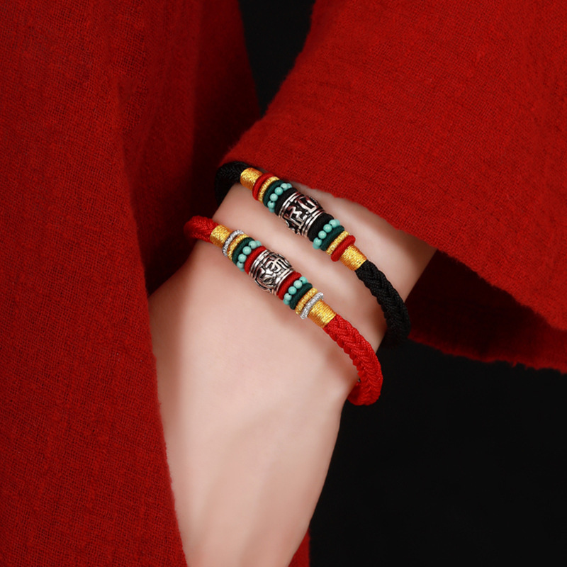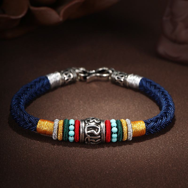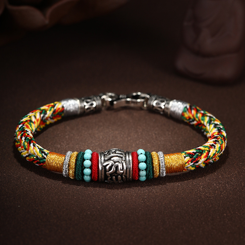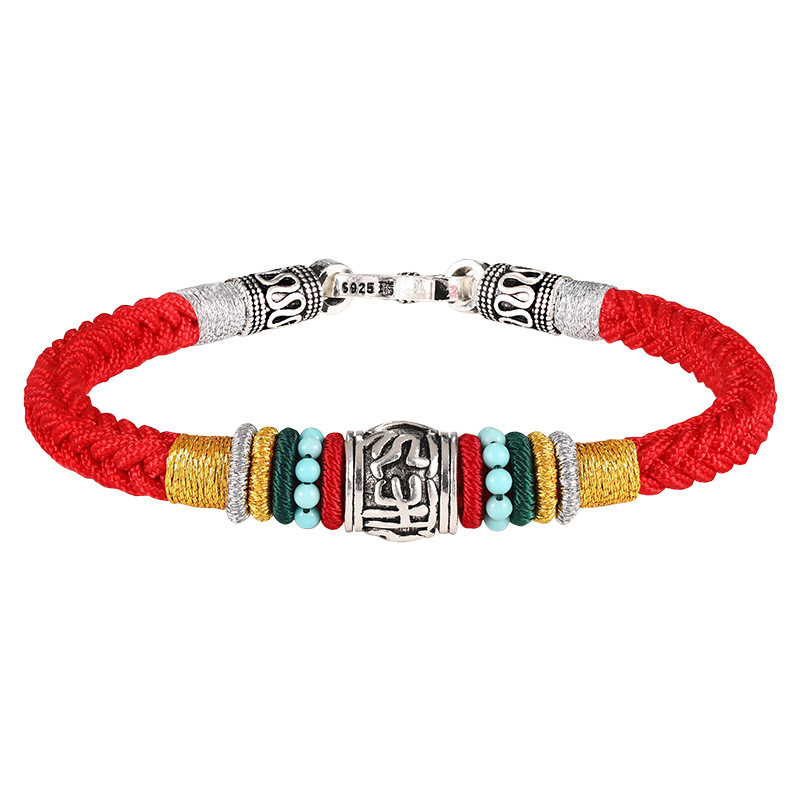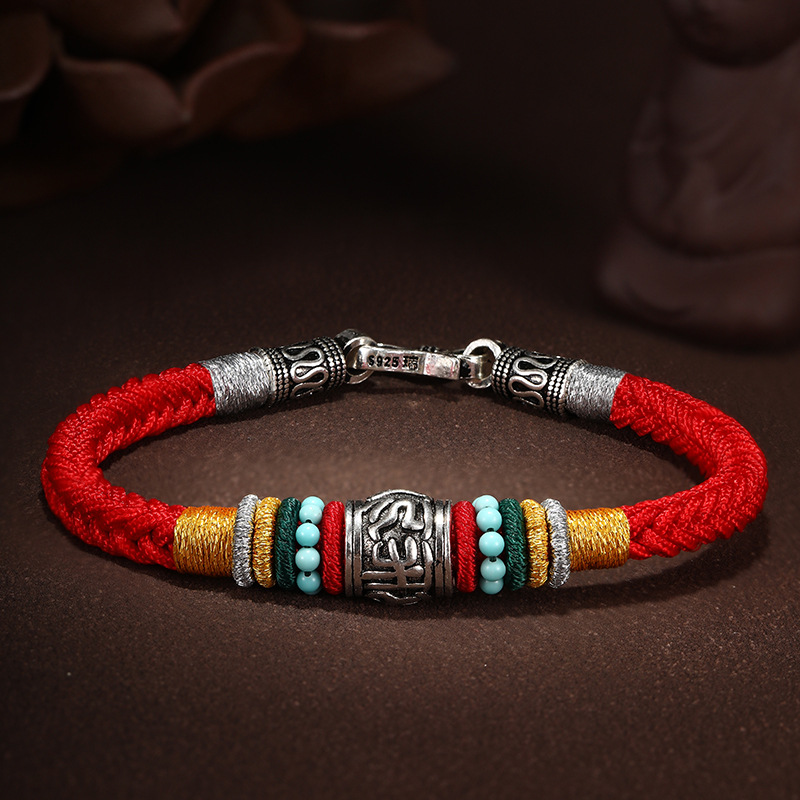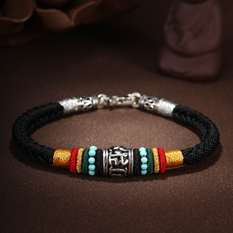 Benmingnian Bracelet Men's Hand-woven Xizang-style Colorful Rope 925 Silver Six-character True Words Ethnic Style Couple's Style