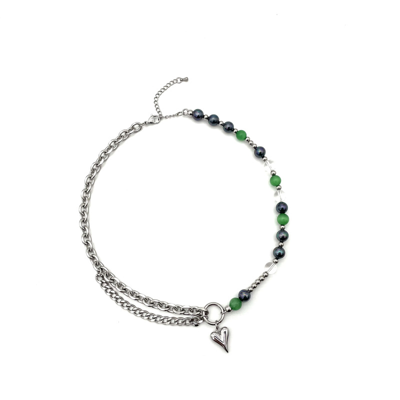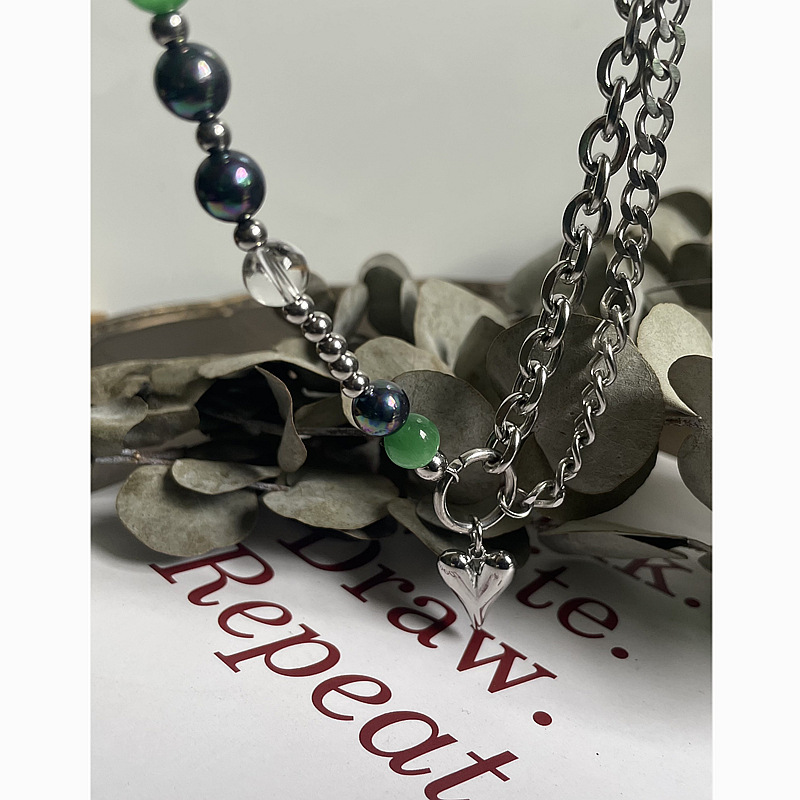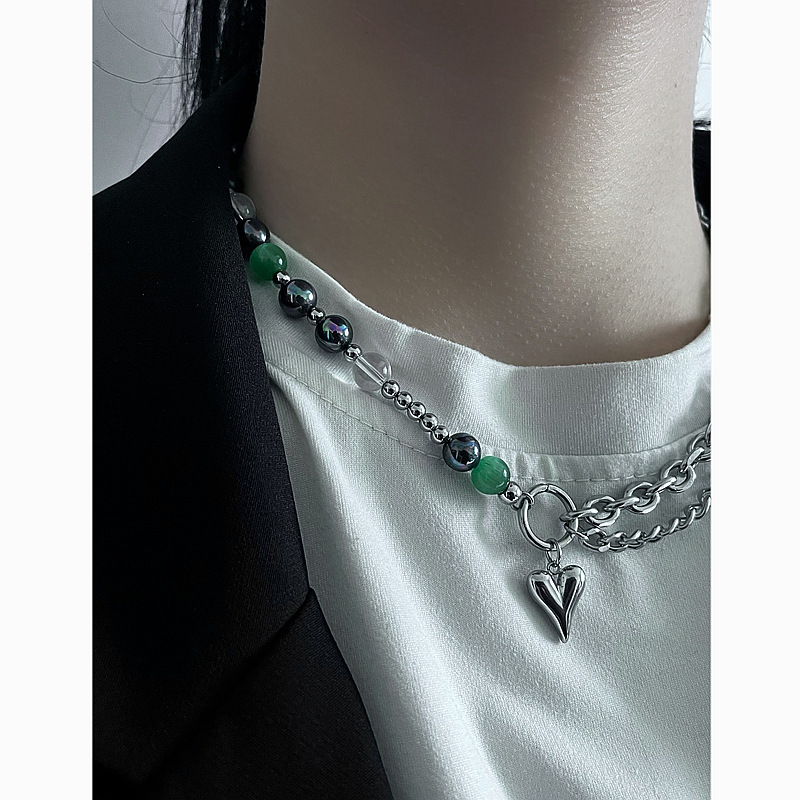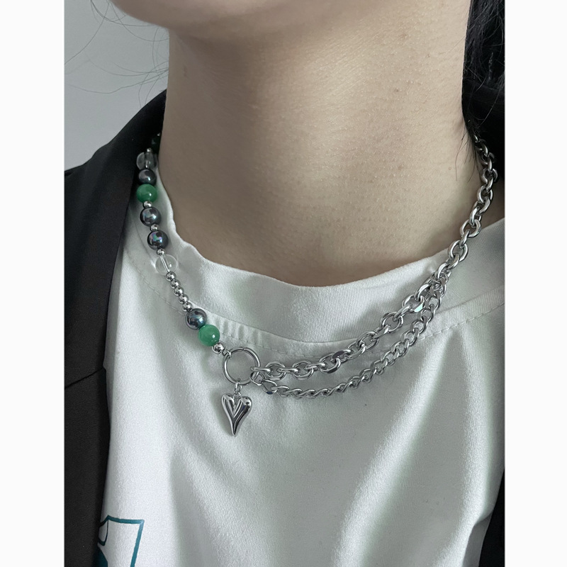 Gage original color matching new Chinese love pendant clavicle chain men and women double beaded necklace ins niche necklace
