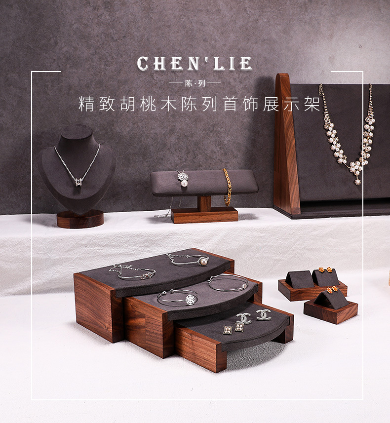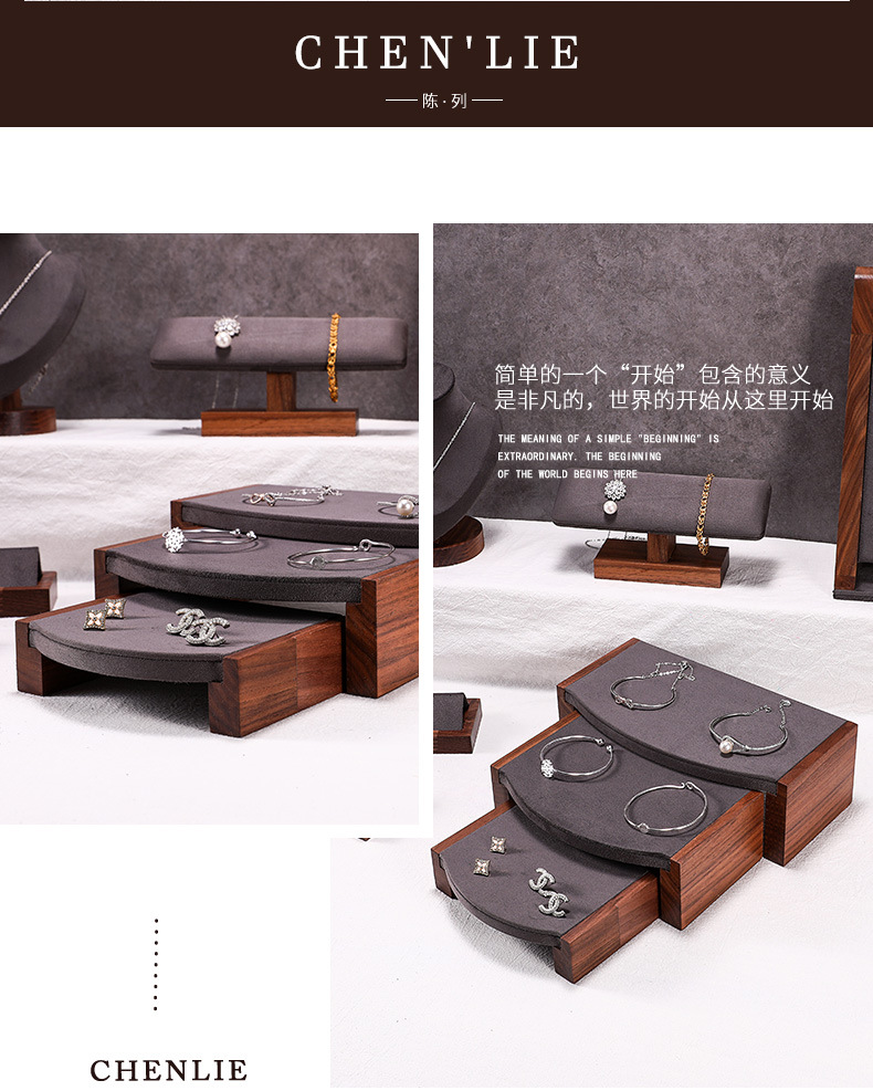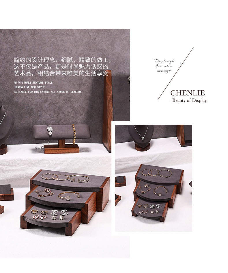 Walnut jewelry display stand tea table three-piece bracelet bracelet necklace display props jewelry support table jewelry rack