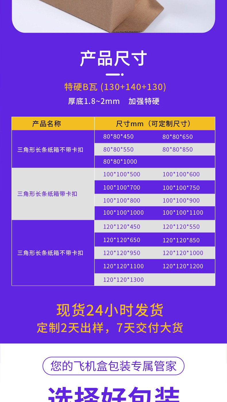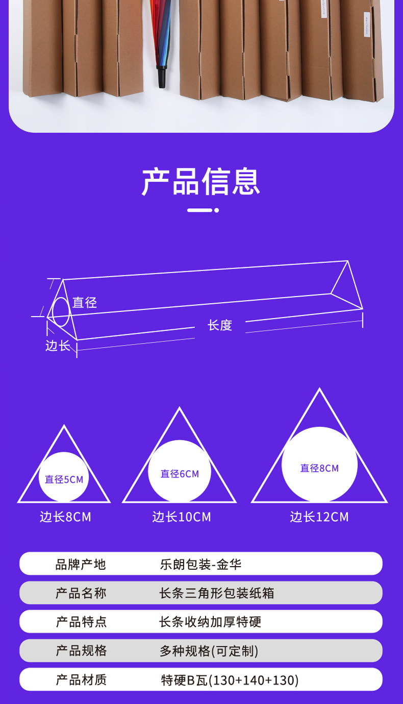Specifications and models: Triangular carton without buckle; 8*8*45cm