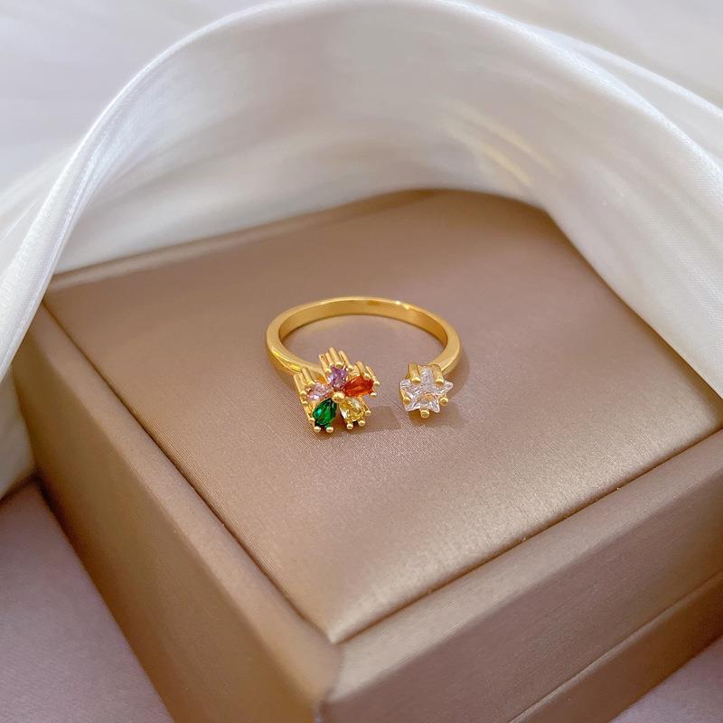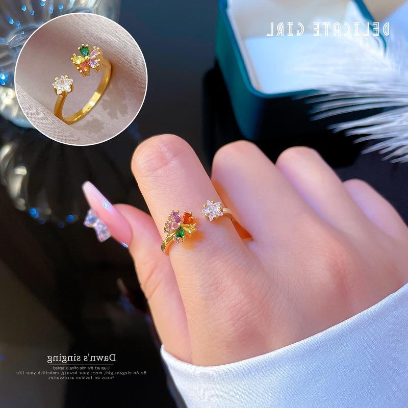 [True Gold] Diamond-encrusted Flower Opening ring Women's Japanese and Korean Niche Simple Design Sense Finger ring ring Online Celebrity