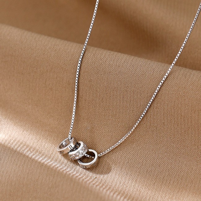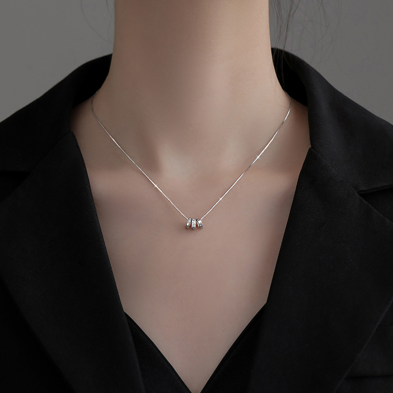 925 Sterling Silver Three-Ring Transfer Bead Necklace Roman Numeral Circle Pendant Accessible Luxury Niche Simple Clavicle Chain