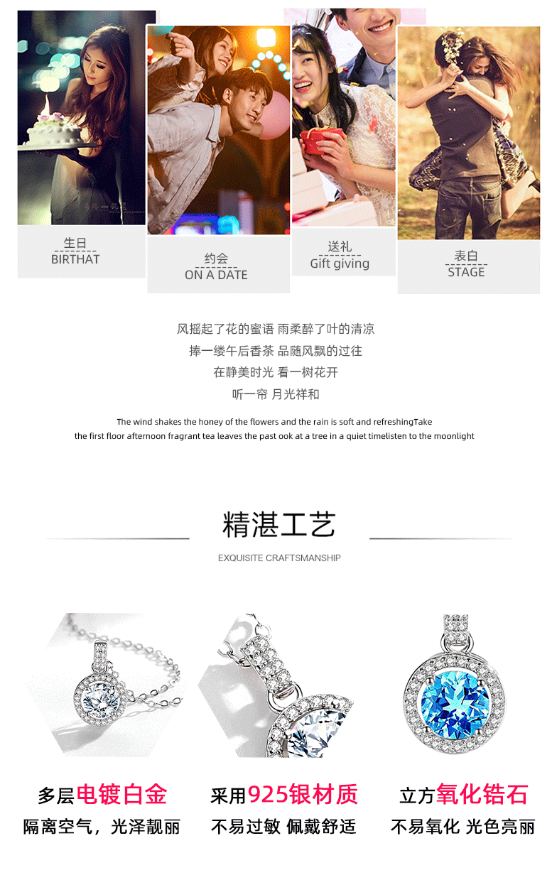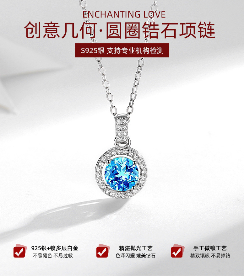 S925 Silver Circle Diamond Necklace Women's Cross-border European and American Clavicle Chain Fashion Zircon Jewelry Wholesale