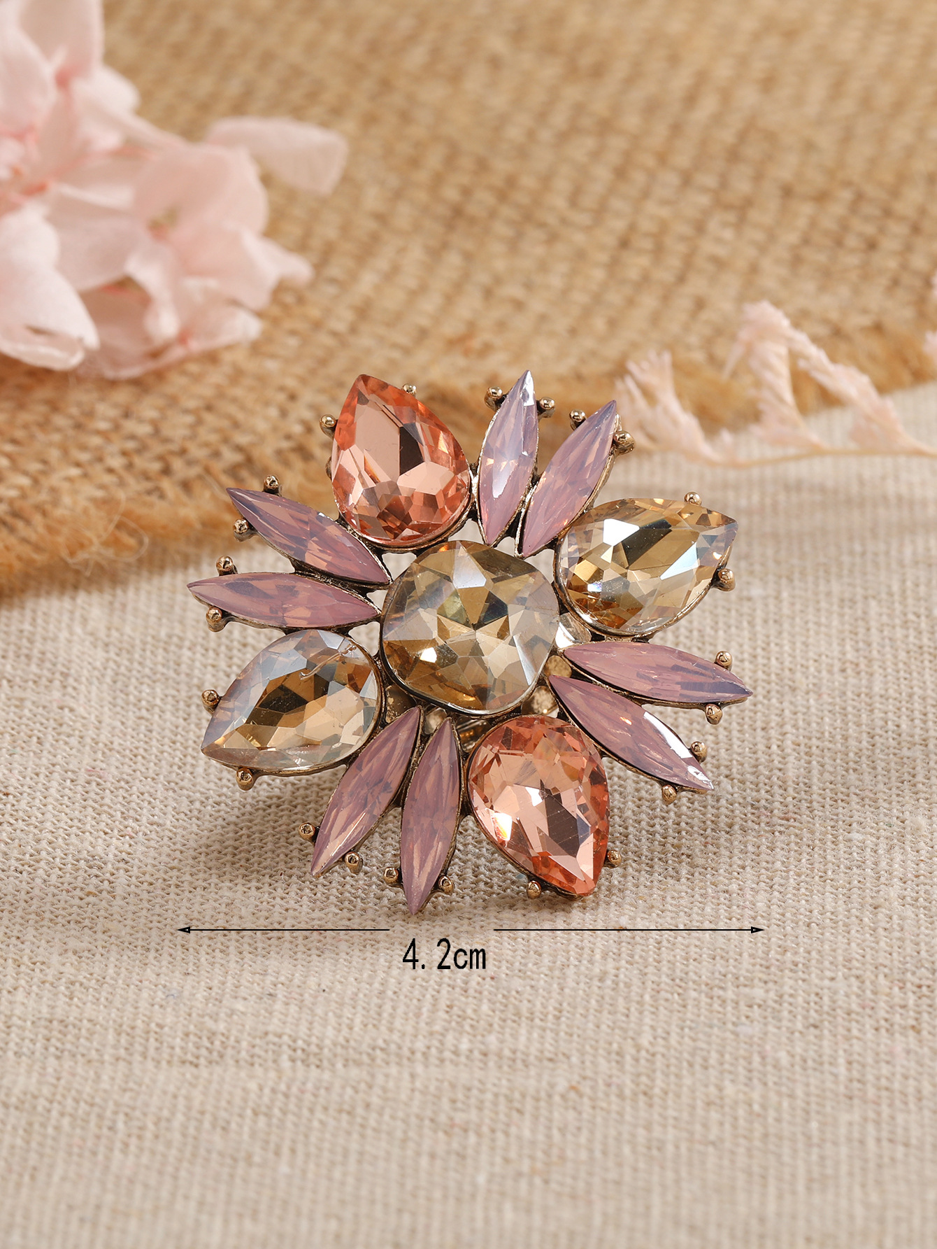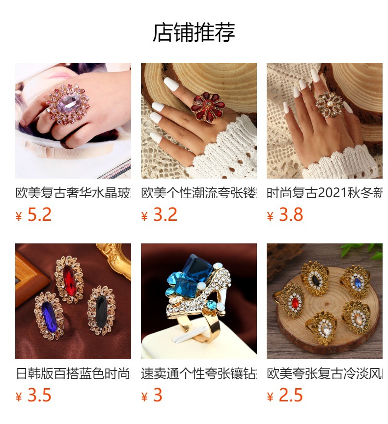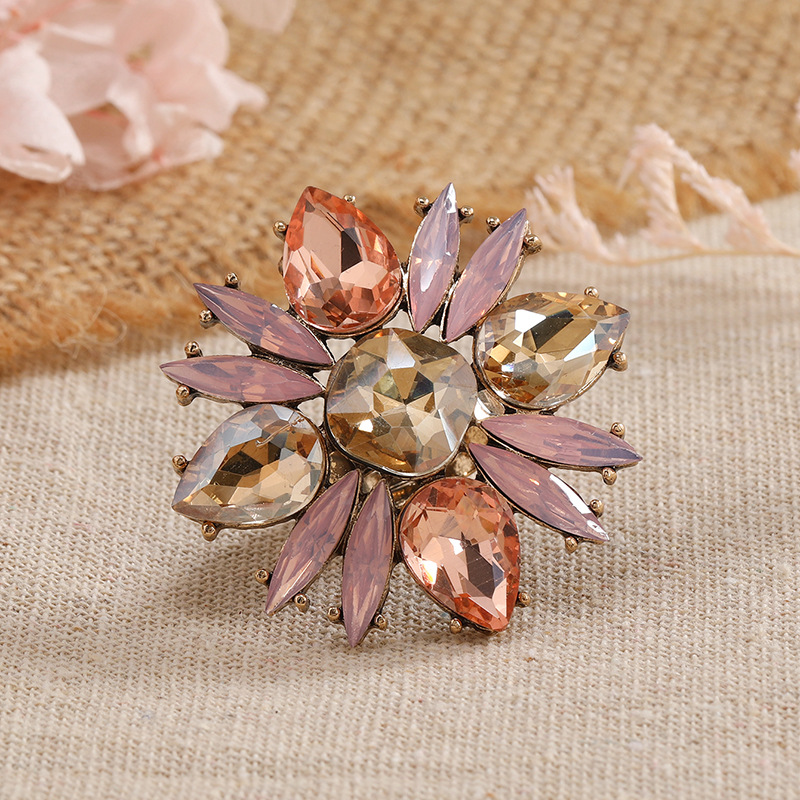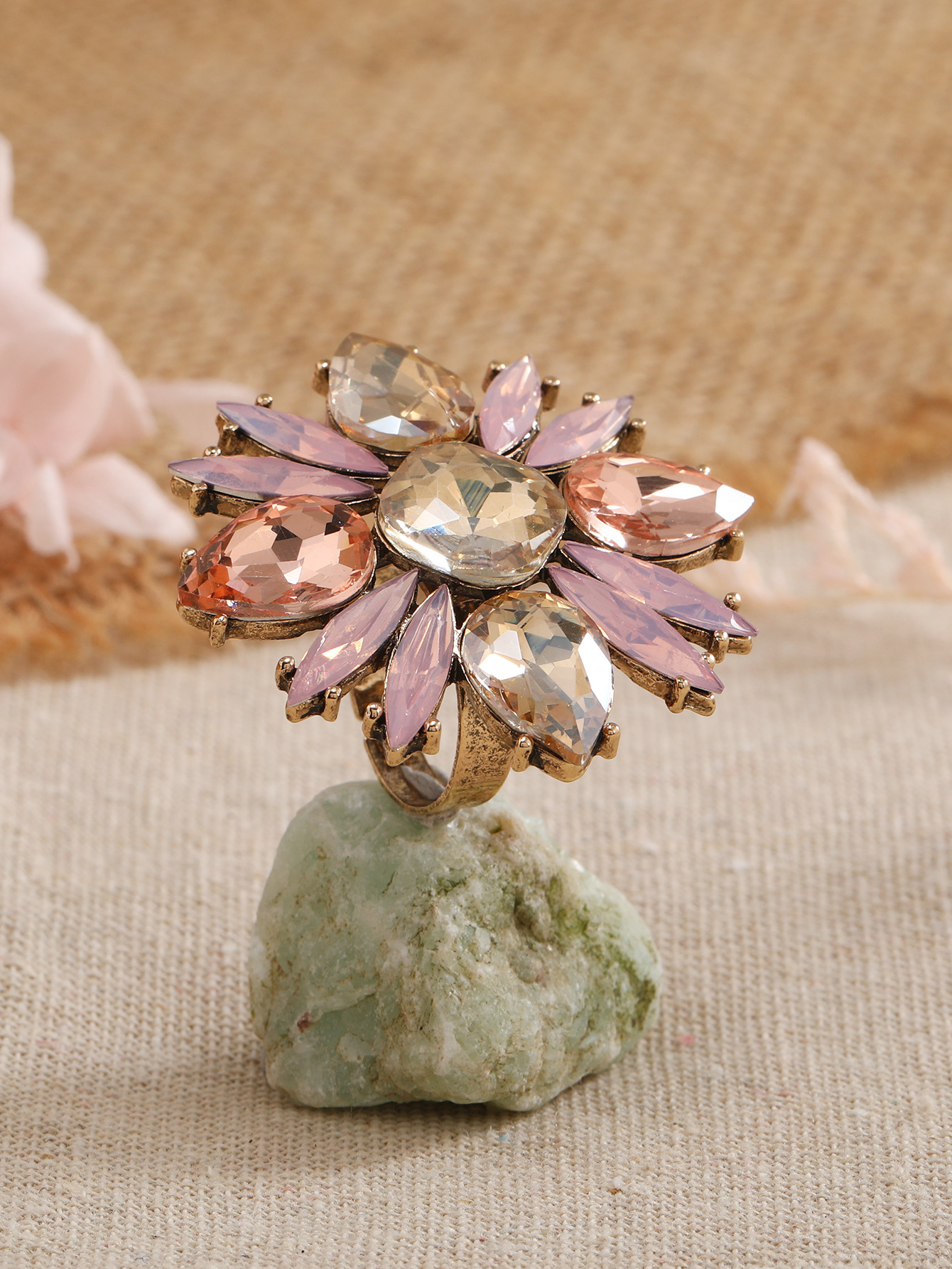 European and American retro jewelry electroplated alloy crystal ring jewelry women's alloy jewelry wholesale plum blossom exaggerated ring
