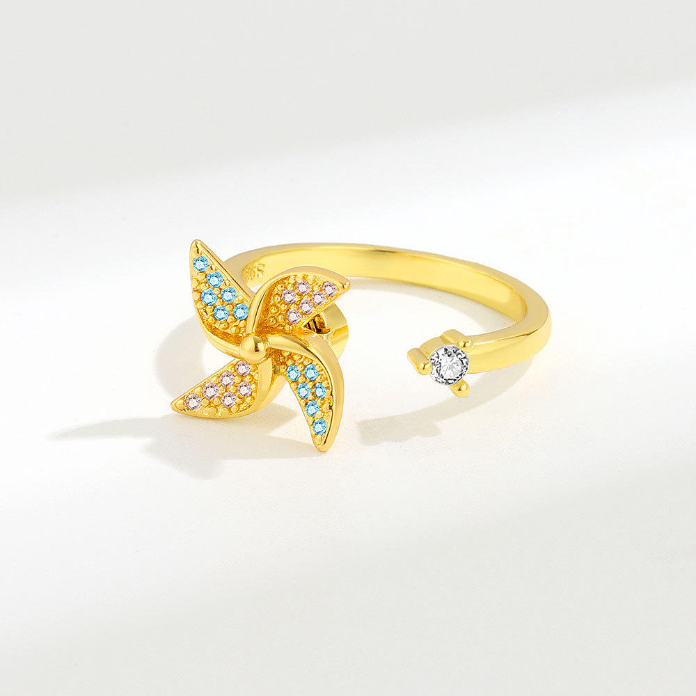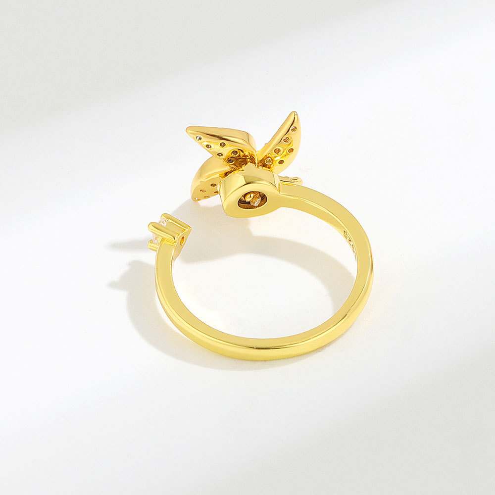 Cross-border Hot Sale Rotating Ring Rotatable Copper Inlaid Zircon Windmill Opening Ring Women's Design Sense Niche Jewelry