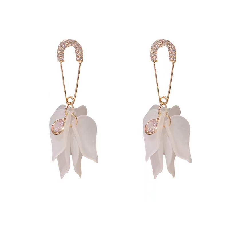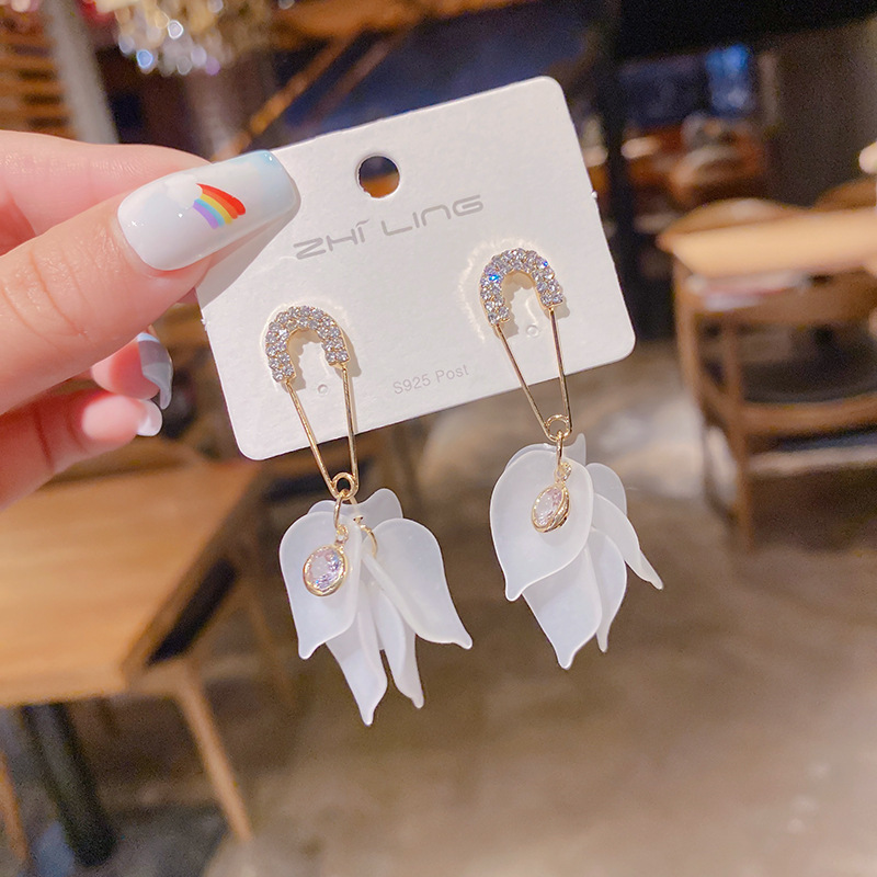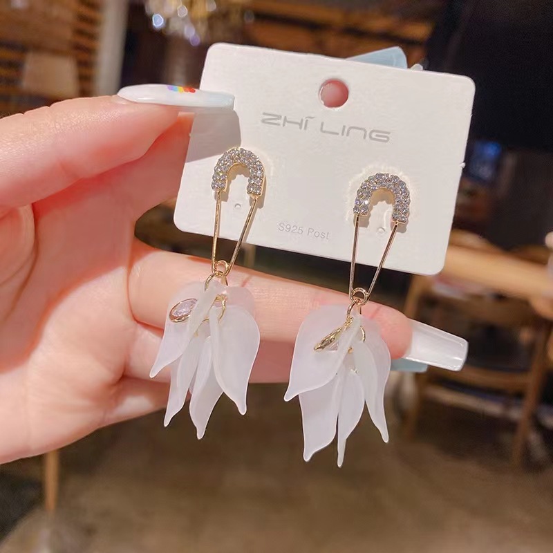 New Trendy Korean Petal Tassel Earrings Design Sense Light Luxury Elegant Personalized Trendy S925 Silver Needle Earrings