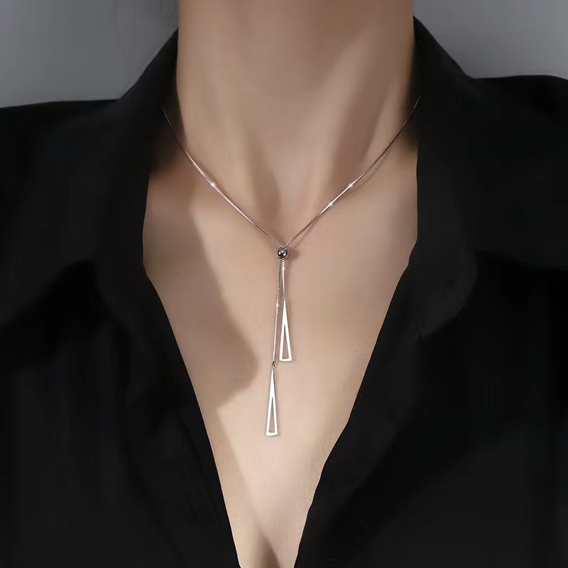 Color: Triangle Tassel Necklace (45+5)-Silver