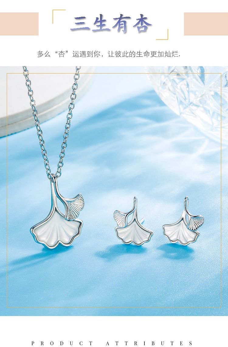 S925 Sterling Silver Sansheng Lucky Earrings Necklace suit High-grade Light Luxury Niche Clavicle Chain One Beel Pendant Earrings