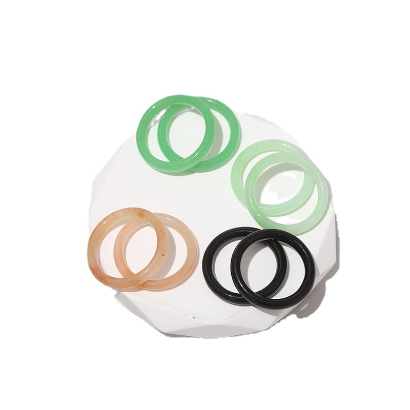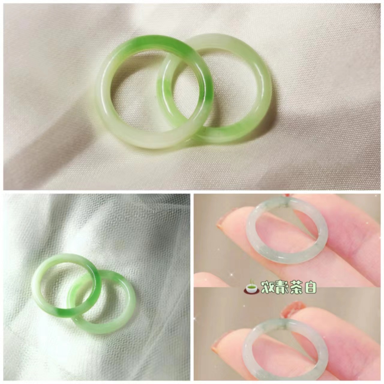 New green plum green tea glass imitation chalcedony ring special national wind ring cold wind couple Ring Ring running ring