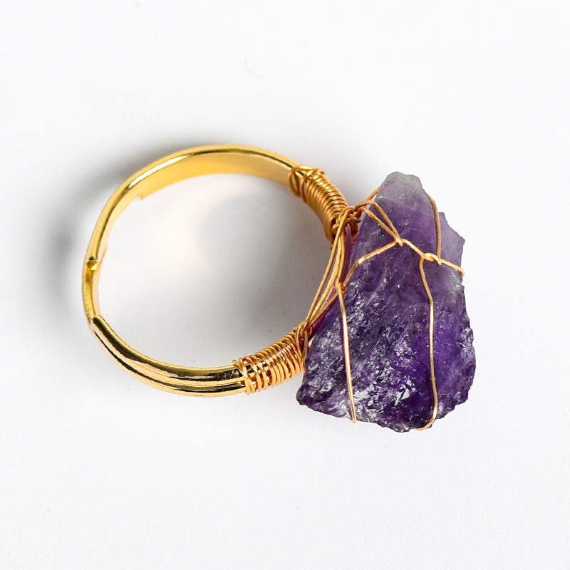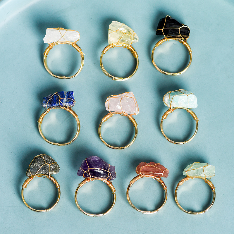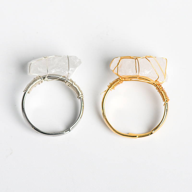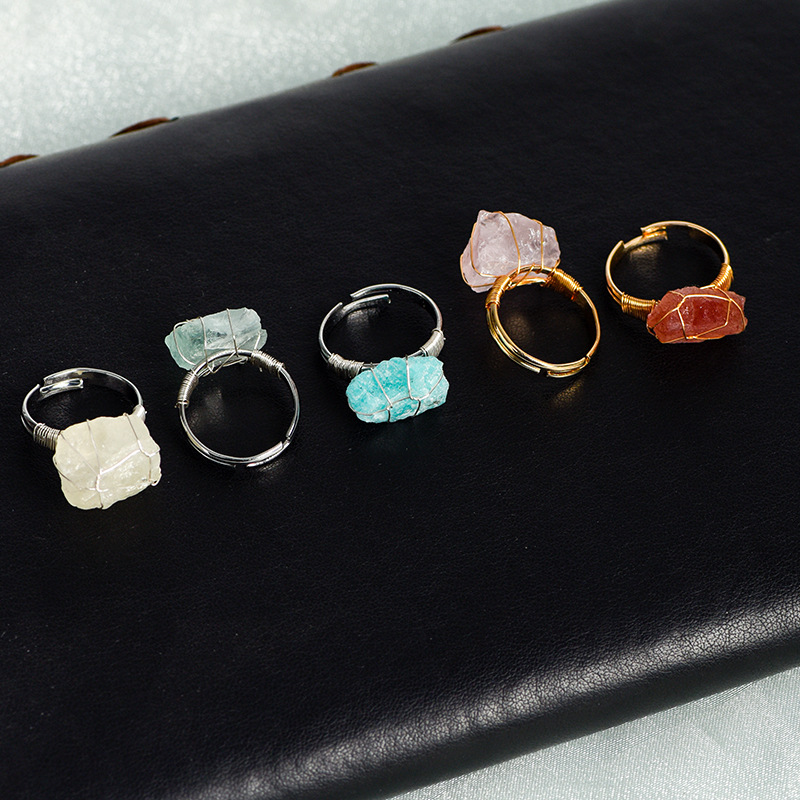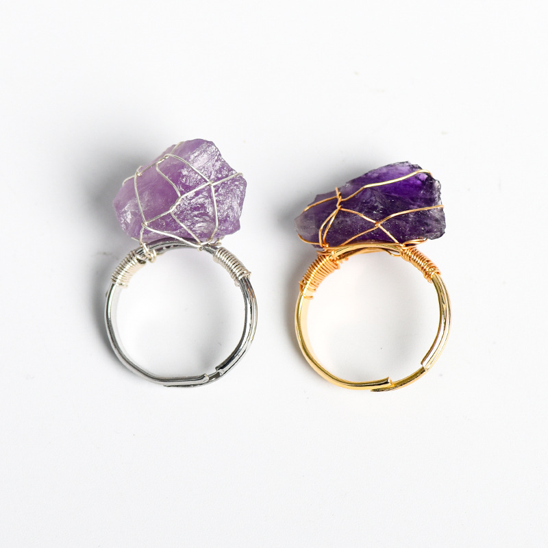 Cross-Border Hot-Selling Natural Stone Live Ring Irregular Raw Stone Amethyst White Crystal Hand-Wound Adjustable Ring