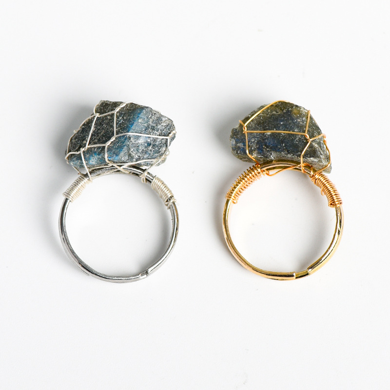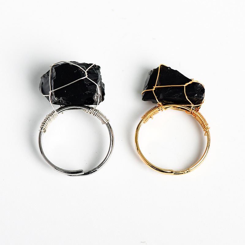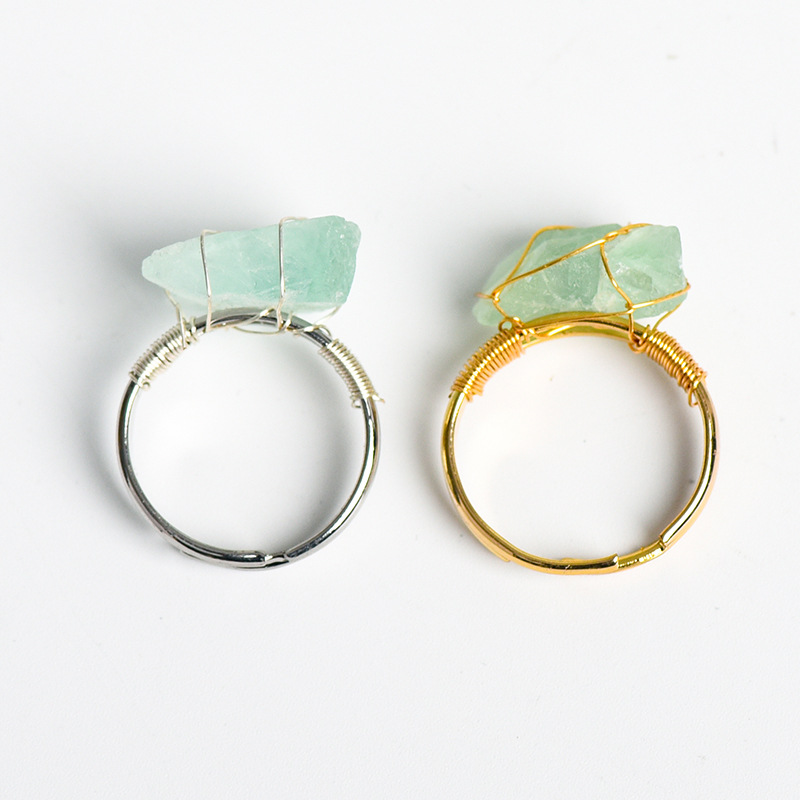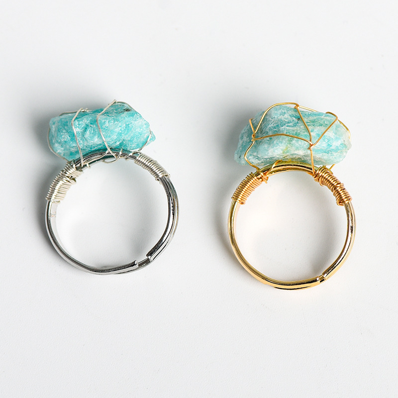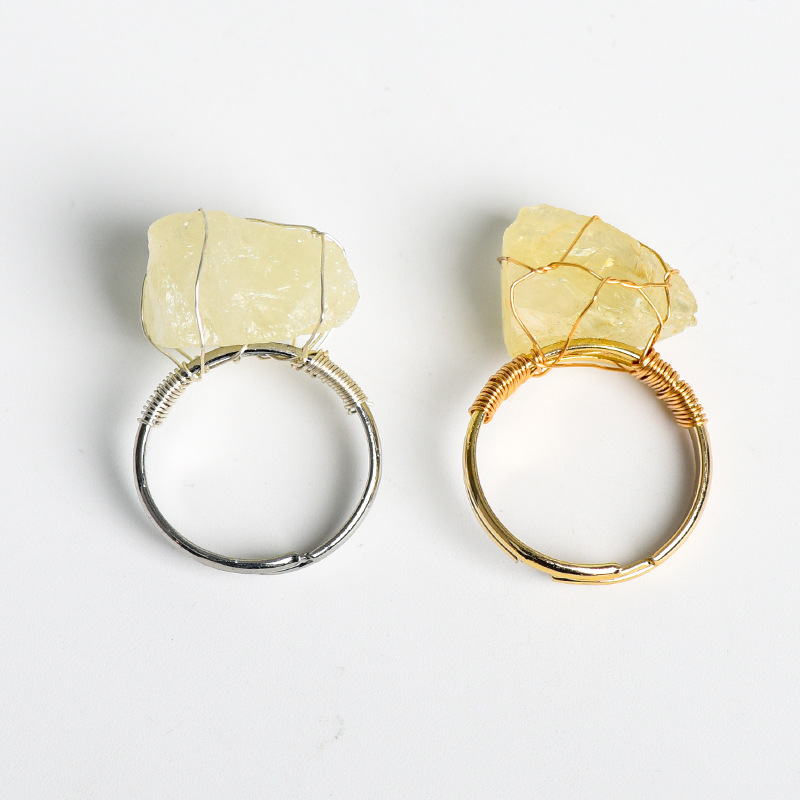 Cross-Border Hot-Selling Natural Stone Live Ring Irregular Raw Stone Amethyst White Crystal Hand-Wound Adjustable Ring