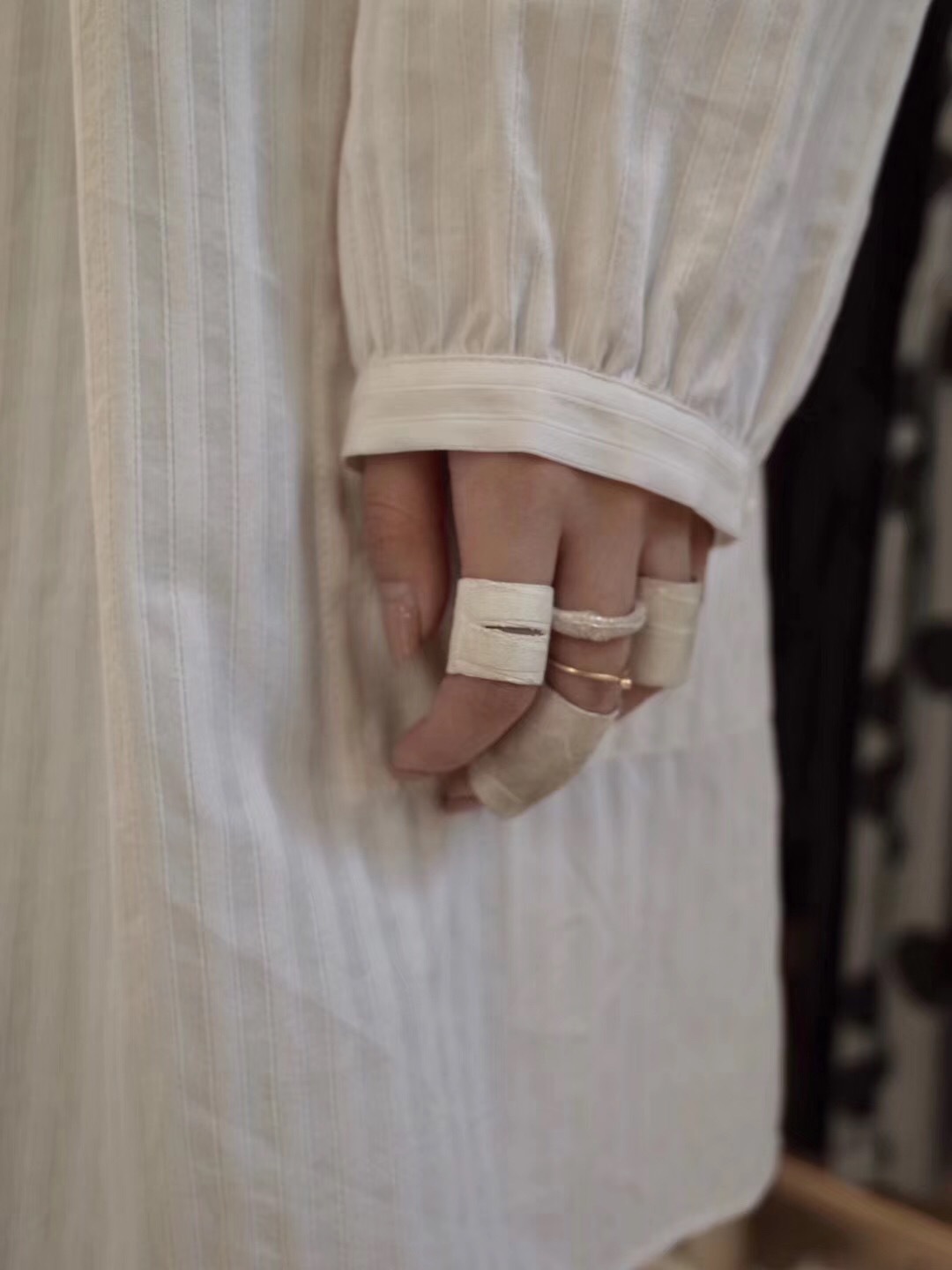 Dark pioneer handmade ring male craftsman detail style crack opening bandage black and white short couple ring
