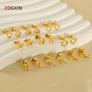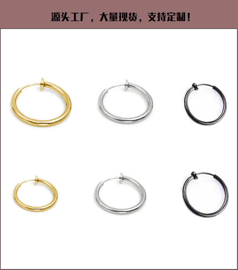 European and American 18K Stainless Steel Non-Pierced Ear Clips for Men and Women, Hip-Hop Titanium Steel Non-Porous Earrings, Earrings, Jewelry Wholesale