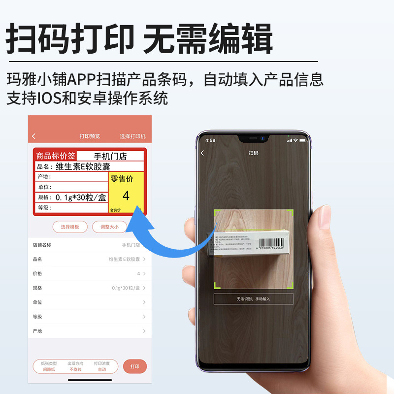 Specifications: C30 blue handheld handheld thermal cardboard 15 rolls