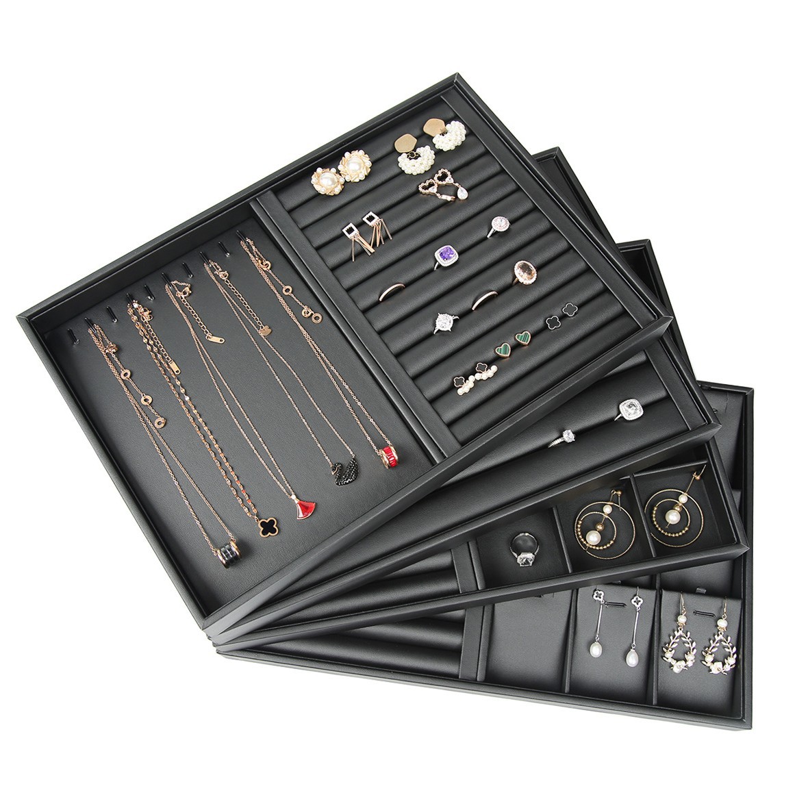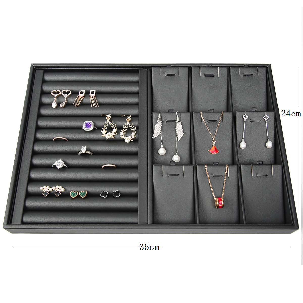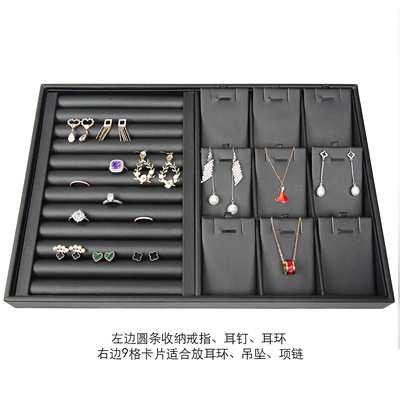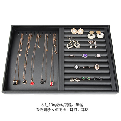 Black pu Litchi Pattern Jewelry Tray Necklace Ring Bracelet Pendant Watch Live Room Jewelry Display Plate