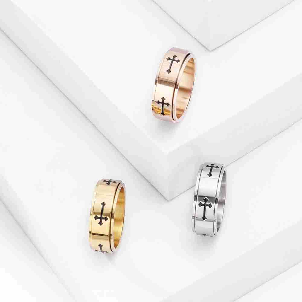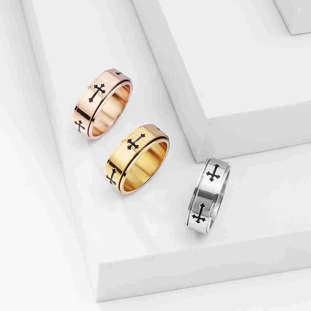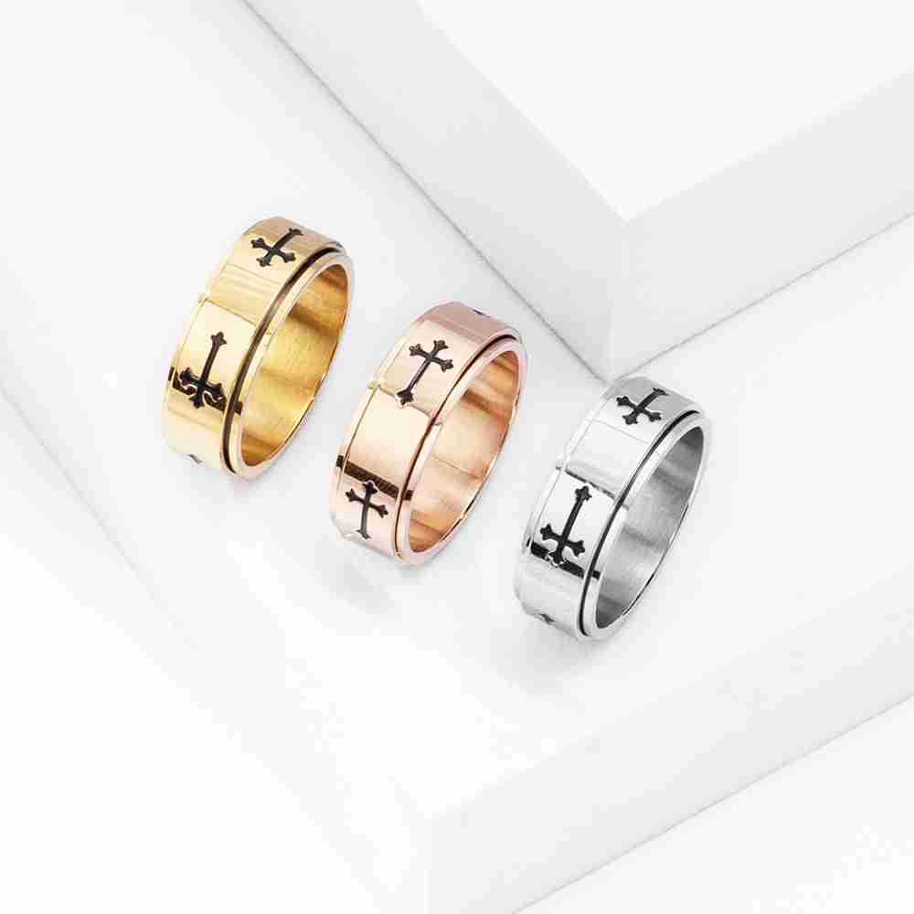 8mm new cross-border e-commerce men's stainless steel cross oiling ring titanium steel rotating oiling ring factory outlet