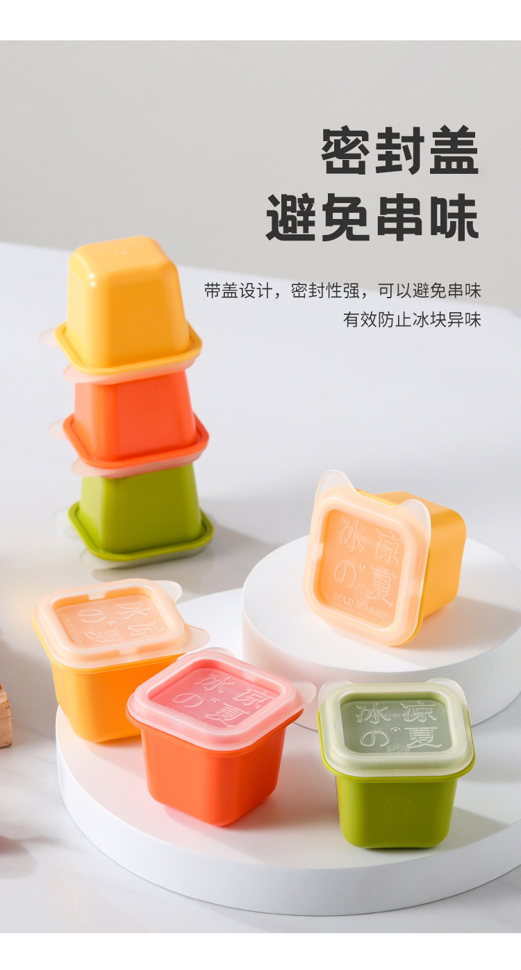 One-bite ice cube mold summer ice tray single square ice box household quick-freezing easy demoulding ice storage box with lid