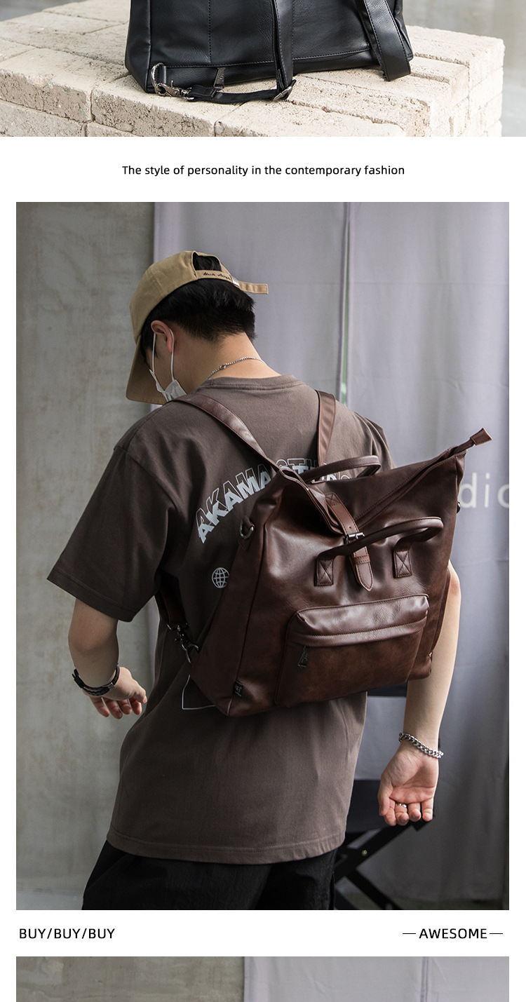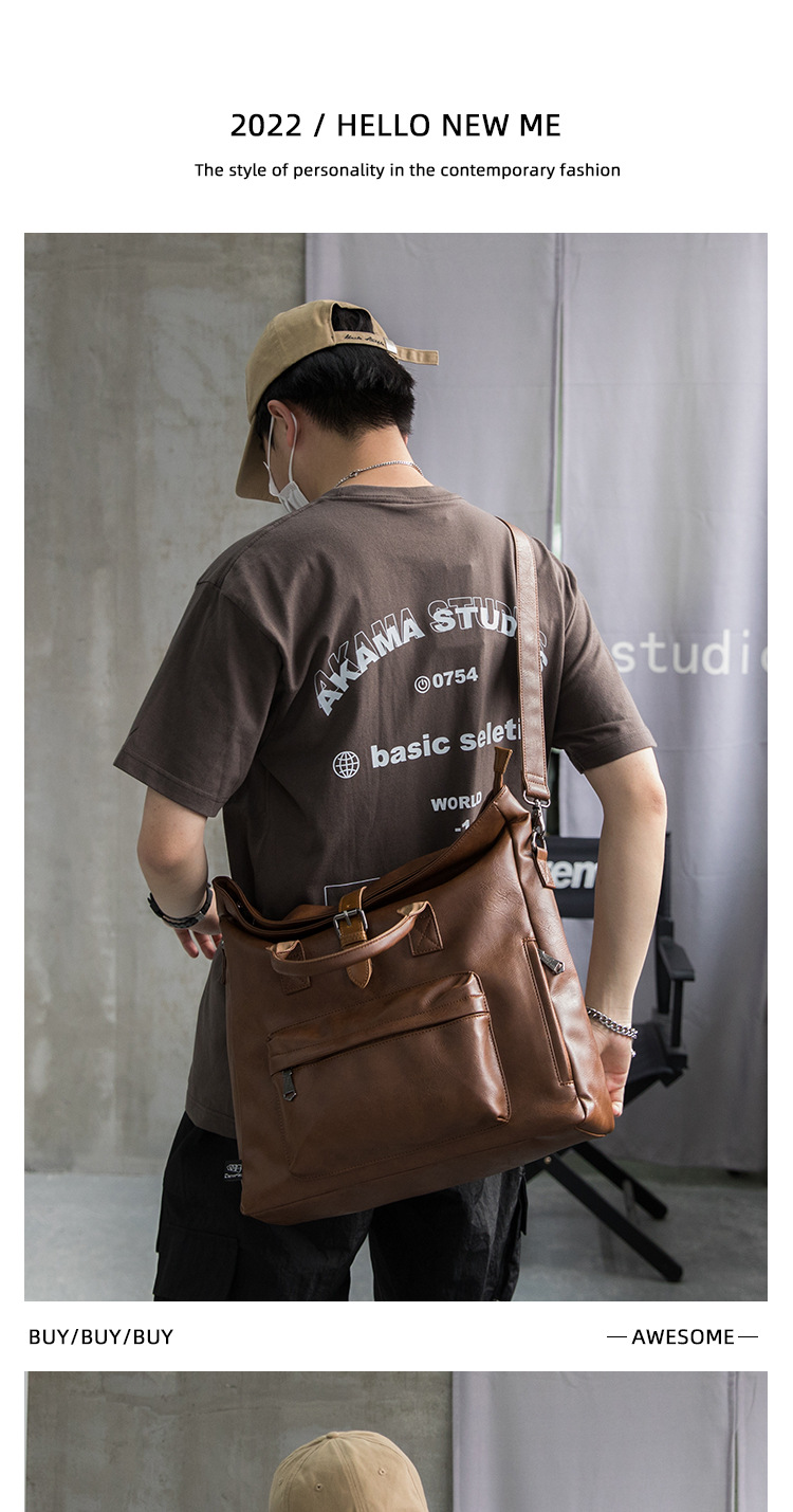 Korean-style Multi-functional PU Leather Men's Bag Fashionable Distinctive Messenger Bag Large Capacity Portable Crossbody Bag Casual Trendy Shoulder Bag