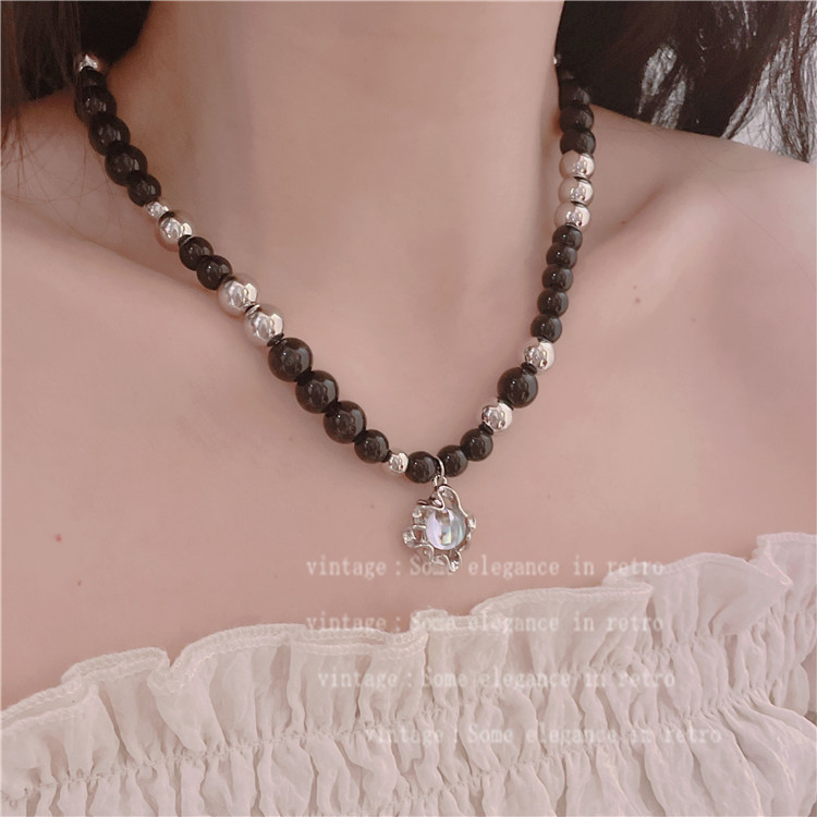Color: A1 wood color imitation pearl necklace