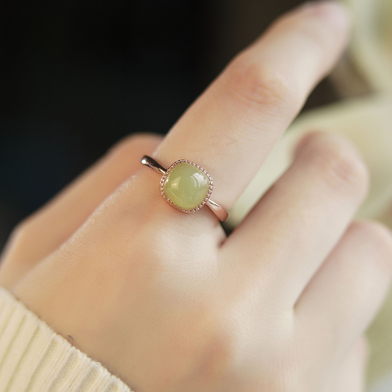 Cubic Sugar Ring Women's Little Red Riding Book Vintage Niche Design Minimalist Artificial Jade Finger Ring
