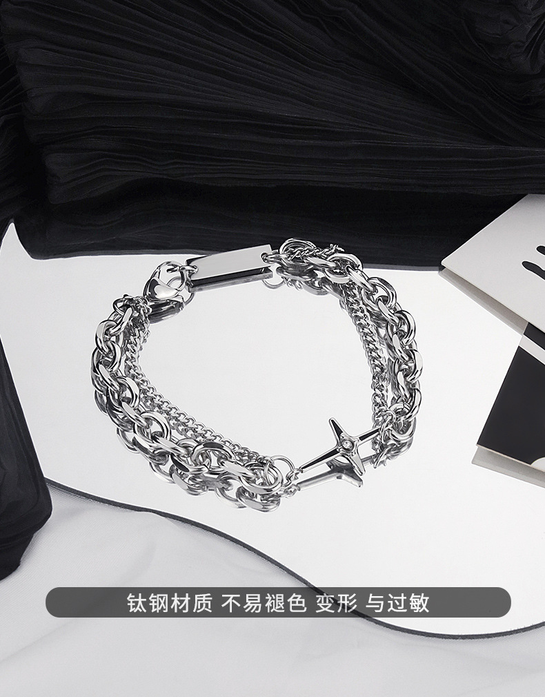 Star Mans Bracelet Men's Titanium Steel Color-free Cross New Trendy Niche Double-layer Bracelet Women's High-end Jewelry Accessories