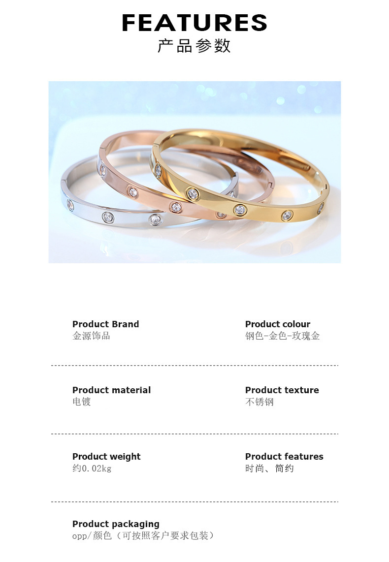 Kajia 18K Rose Gold Ten Diamond Bracelet Women's European and American Fashion Baby's Breath Diamond Titanium Steel Bracelet Custom Jewelry