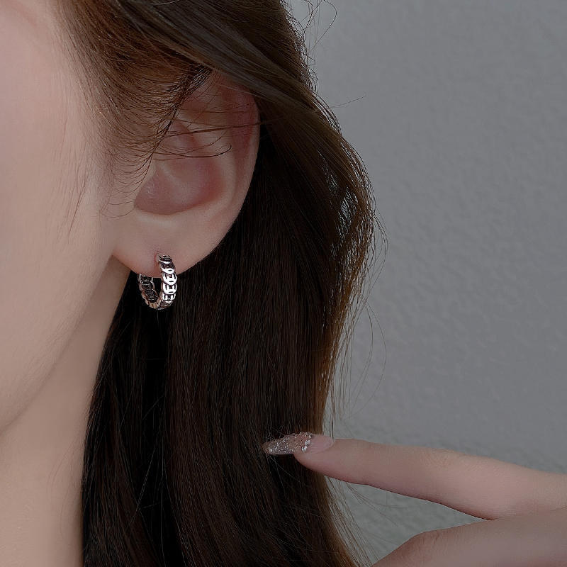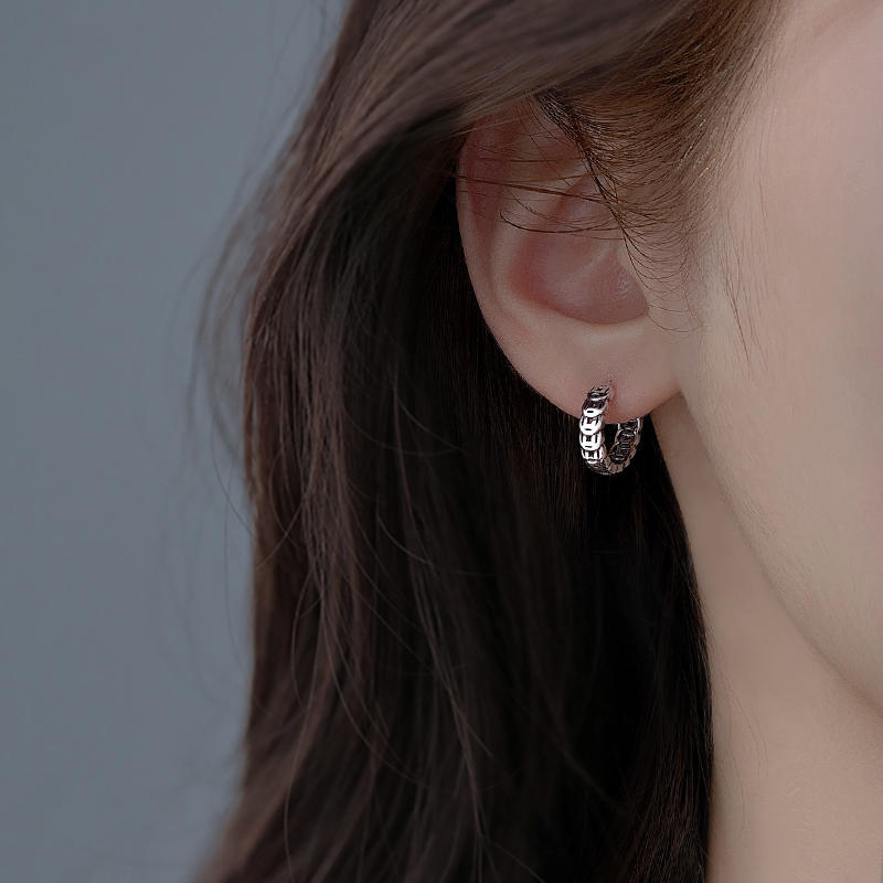 Fangxing S925 Sterling Silver Ear Ring Niche Design Copper Earrings Women's Retro Distressed Distinctive Coin Ear Buckle New Fashion