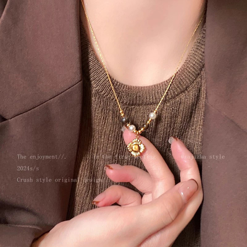 Color: French lazy pearl necklace for women-x1312 gold 5mm