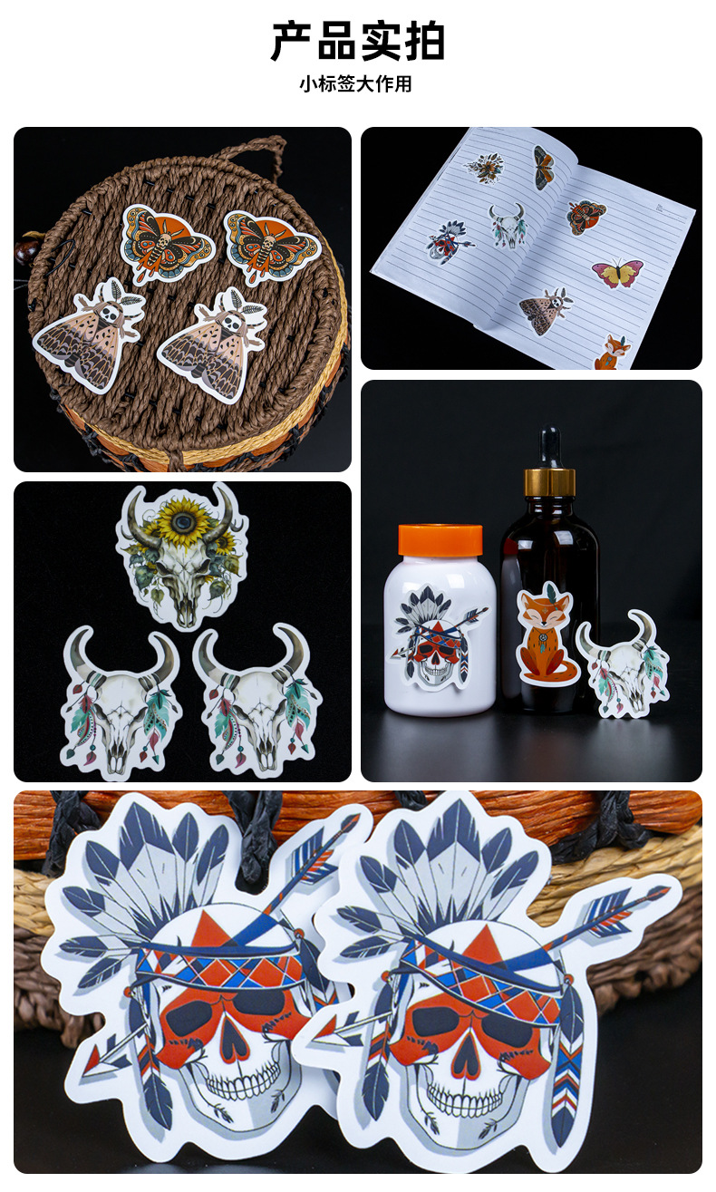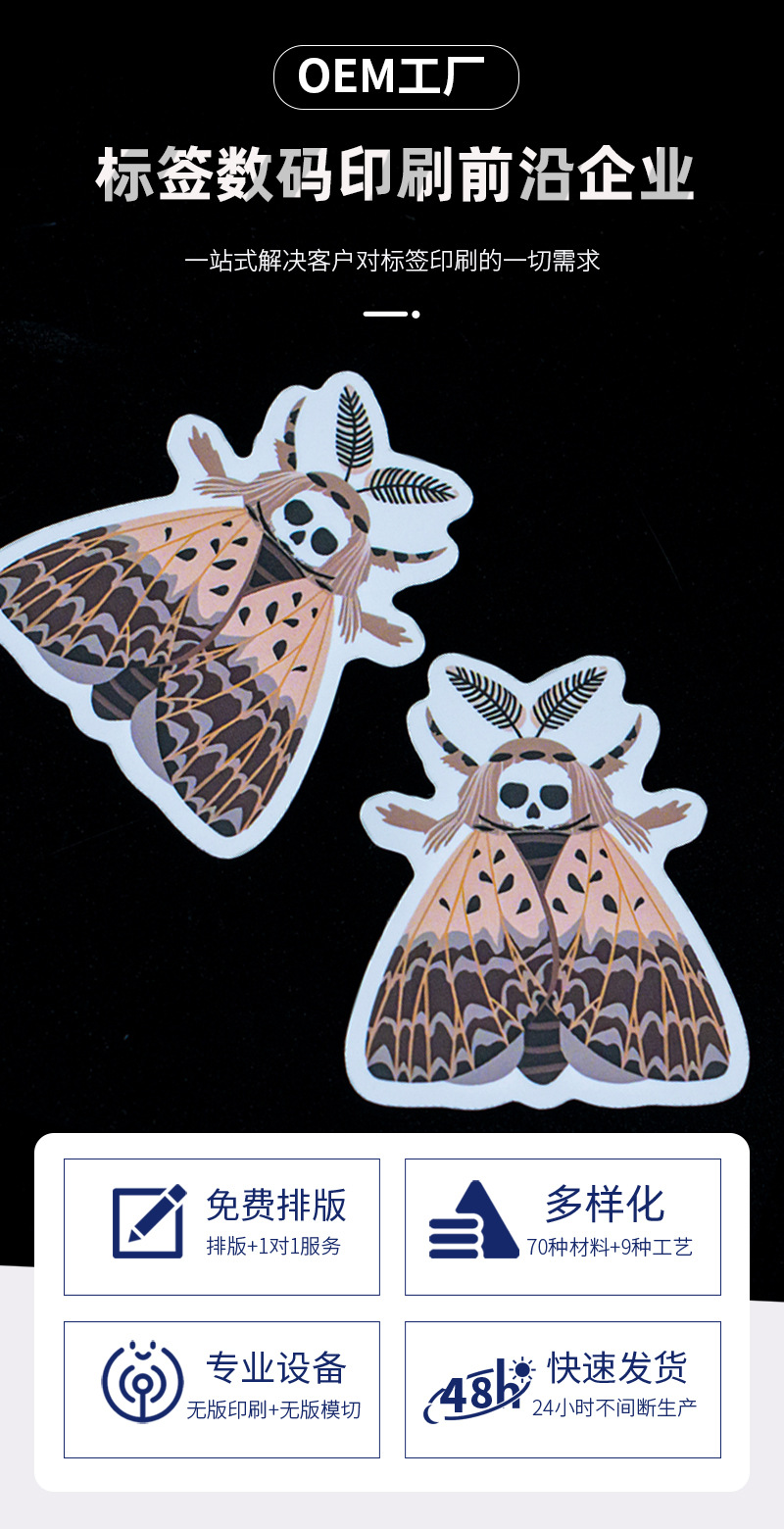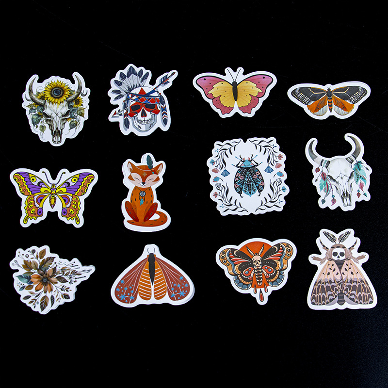 Customized Full-Cut Special-Shaped Stickers for Personalized Decoration, Retro Anime Creative Skull Elements, Horror Butterfly Stickers