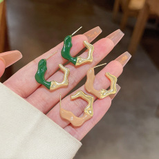 S925 Silver Needle European and American Exaggerated Big Circle Earrings Women's Simple All-match Elegant Green Ring Earrings Internet Celebrity Same Style Earrings