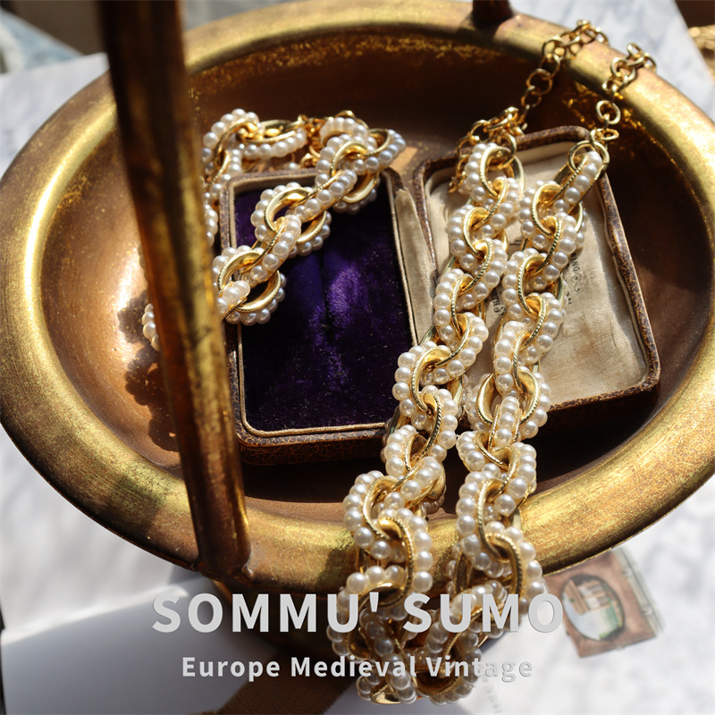 真美饰品厂家直供vintage中古项链套装复刻珍珠短款项链手链耳环