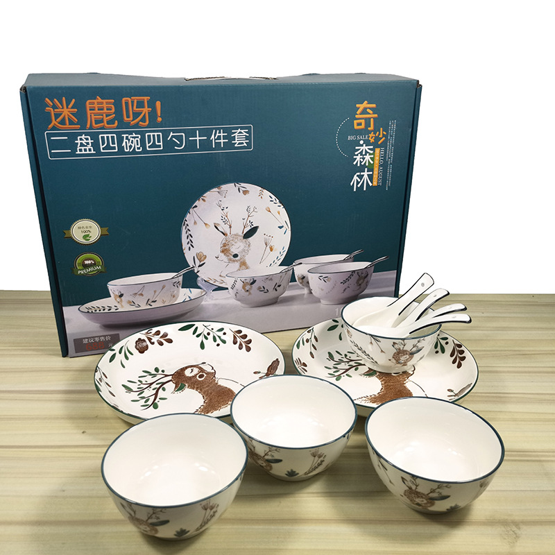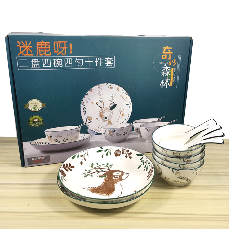 产品名称:“迷鹿呀”陶瓷碗盘勺套装 产品材质:陶瓷