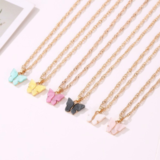 Japanese and Korean Style Butterfly Necklace Acrylic Color Sweet Beauty All-match Clavicle Chain Personalized Internet Celebrity Niche Trendy Neck Chain