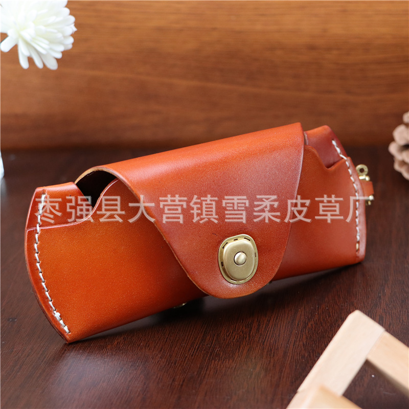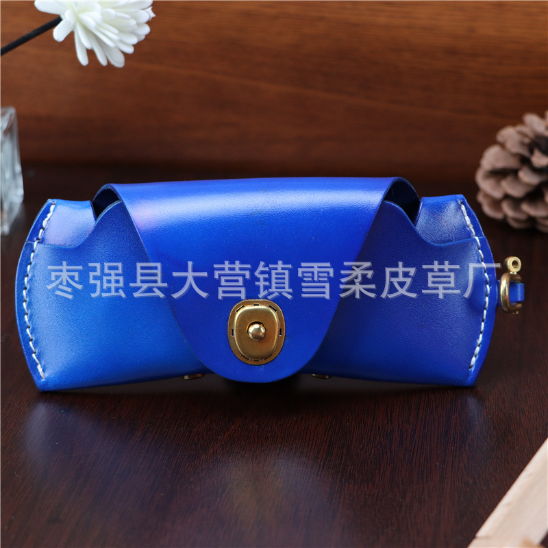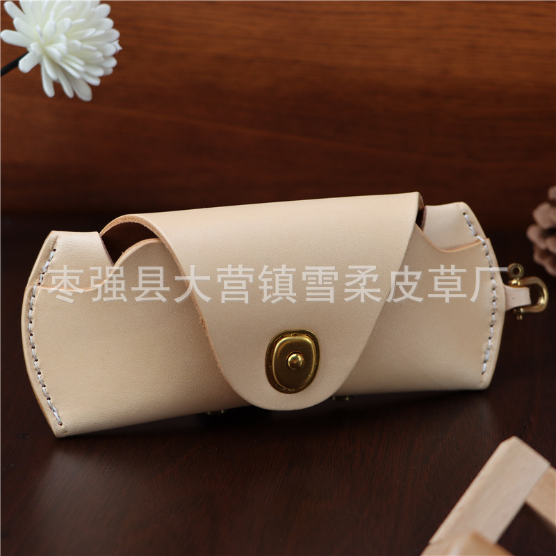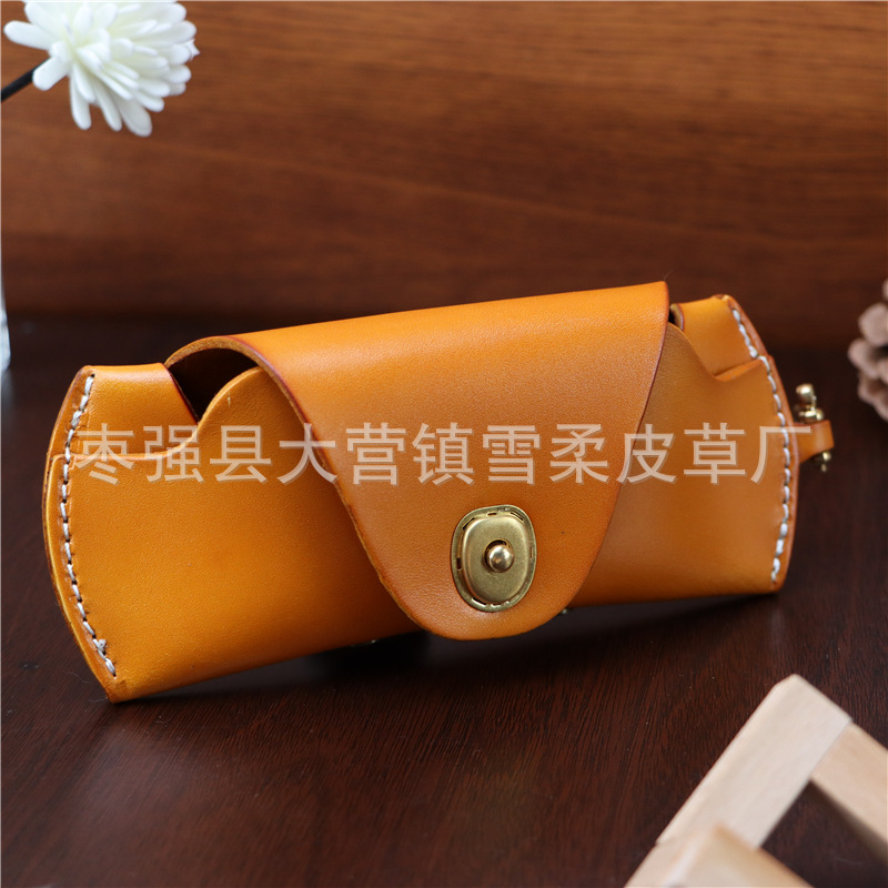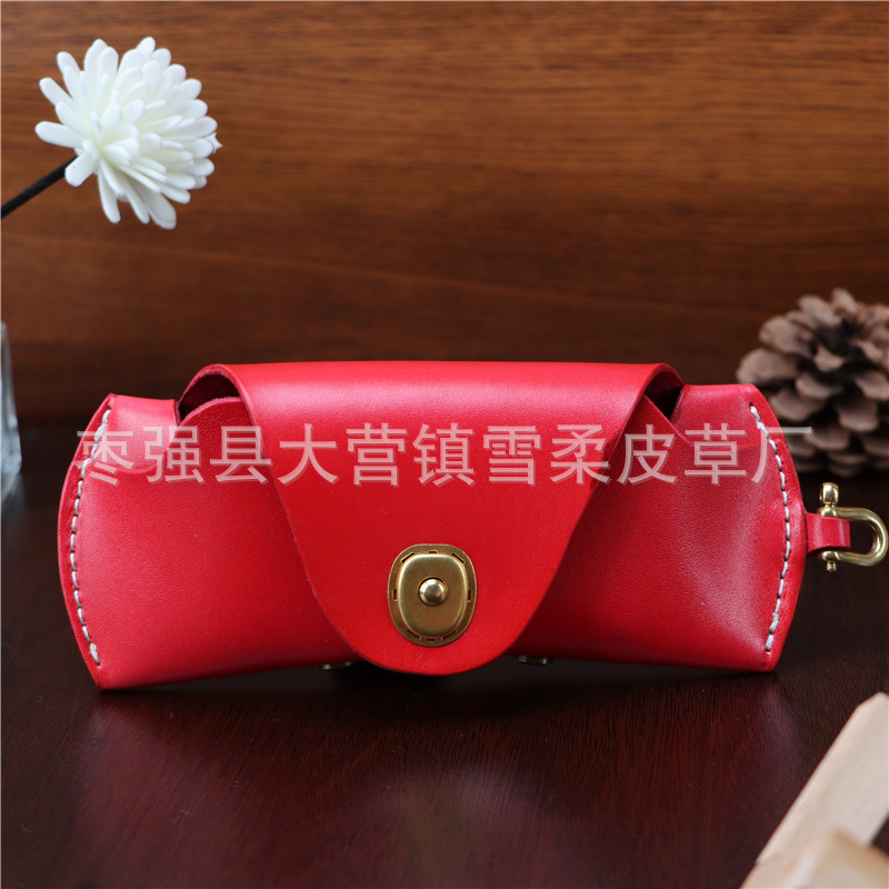Top layer cowhide glasses box for near-vision glasses presbyopic glasses sunglasses men's and women's portable fashion lanyard leather storage box