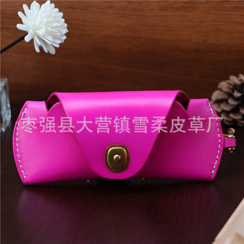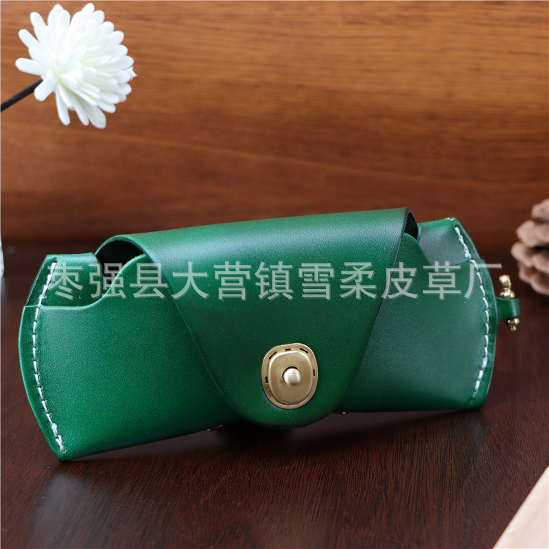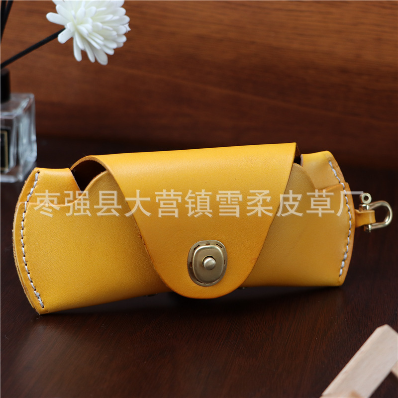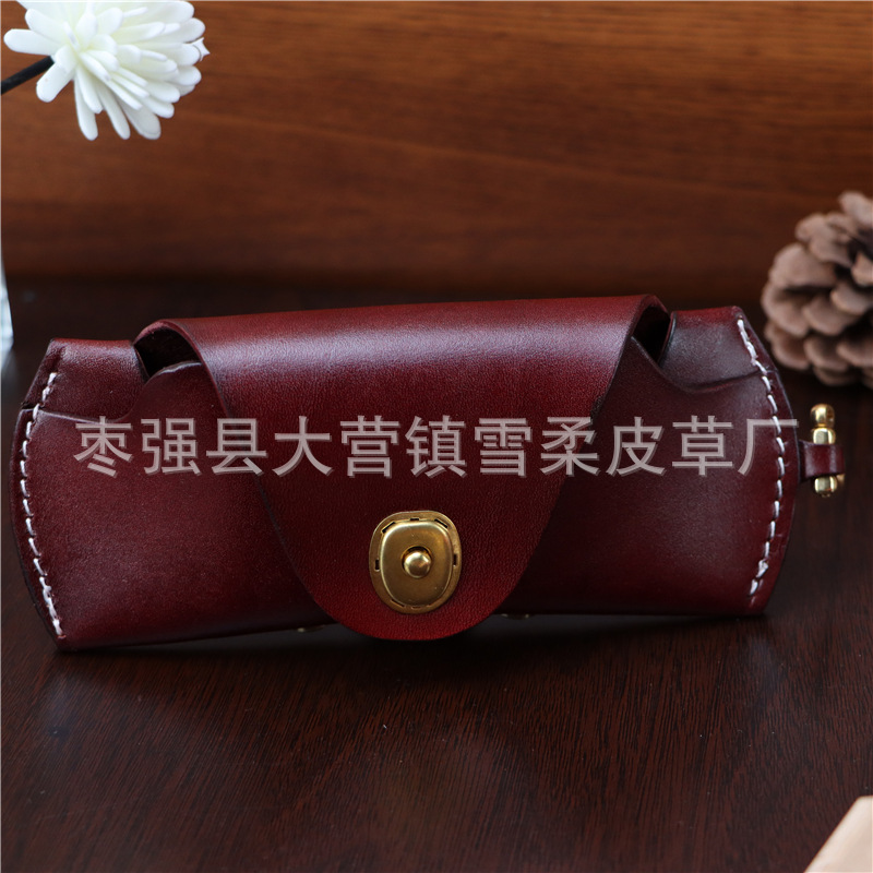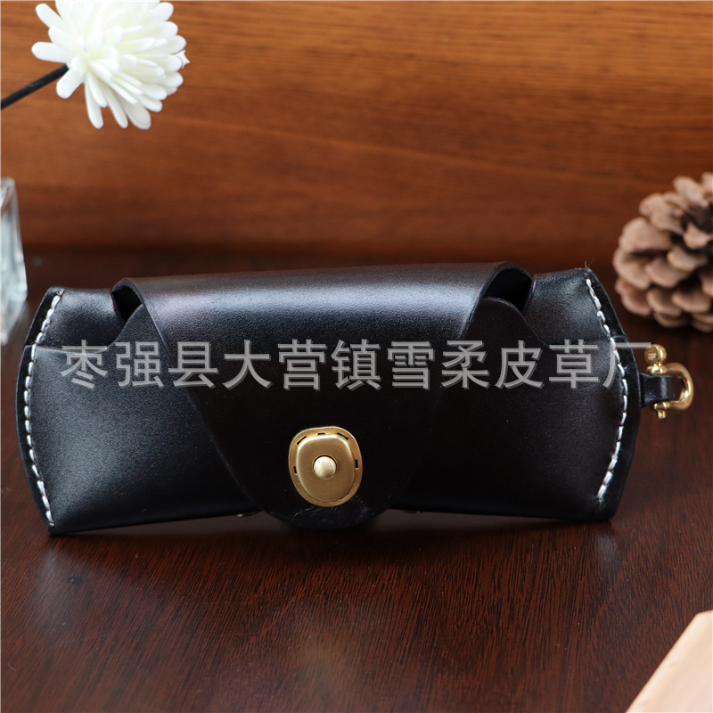 Top layer cowhide glasses box for near-vision glasses presbyopic glasses sunglasses men's and women's portable fashion lanyard leather storage box