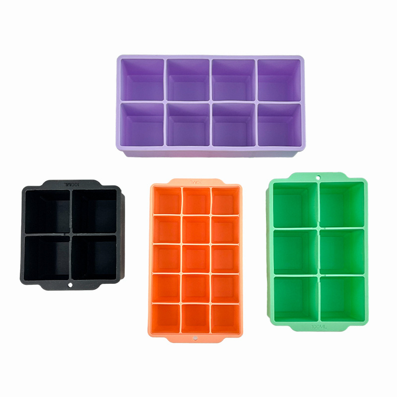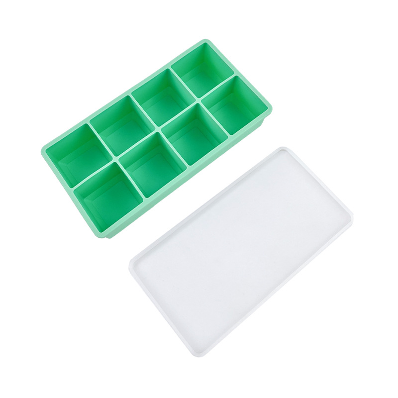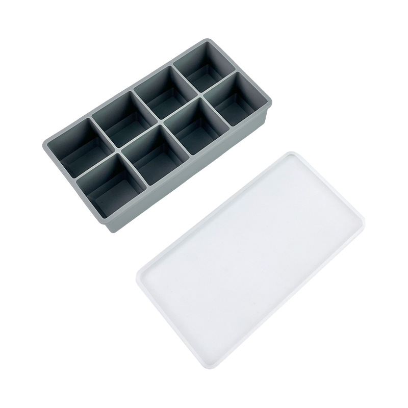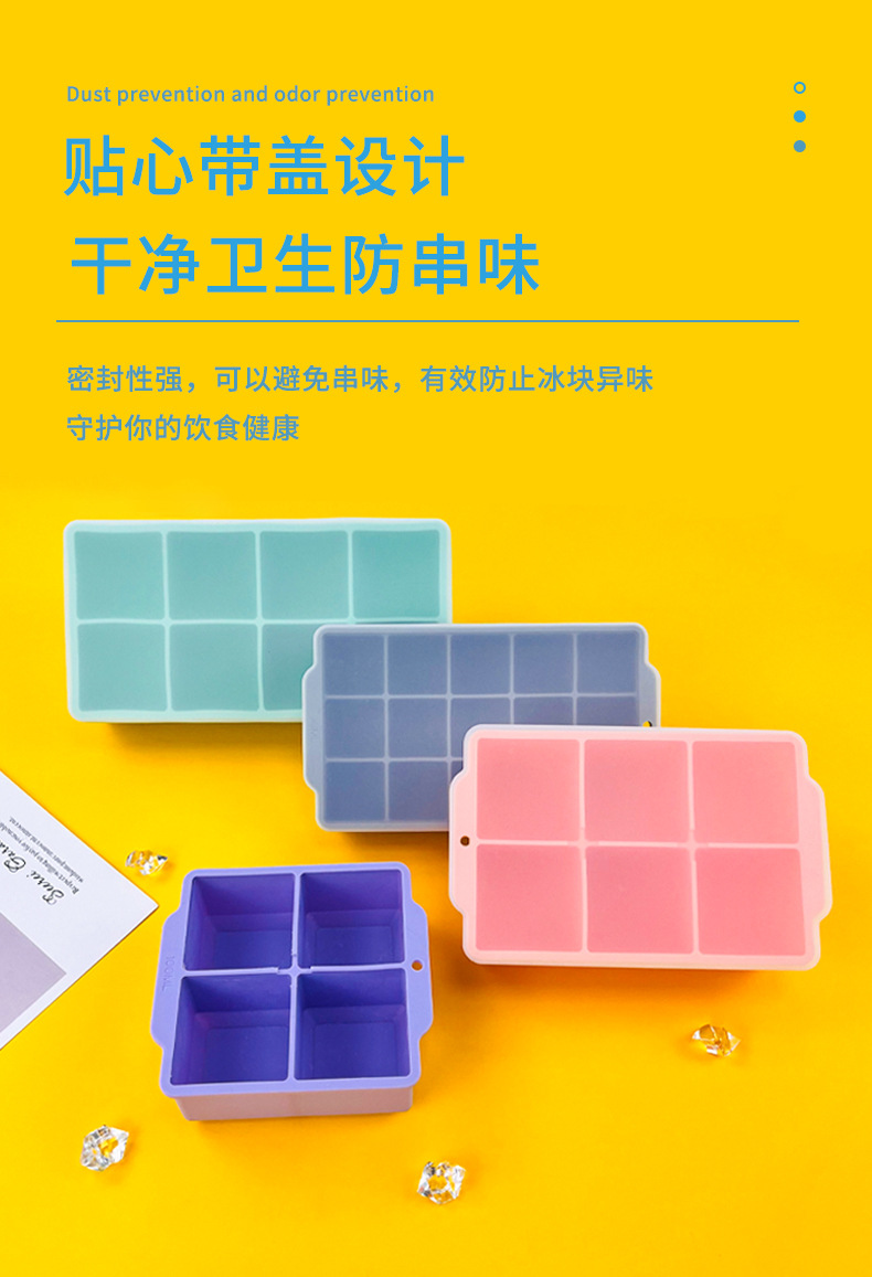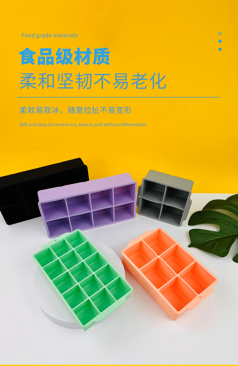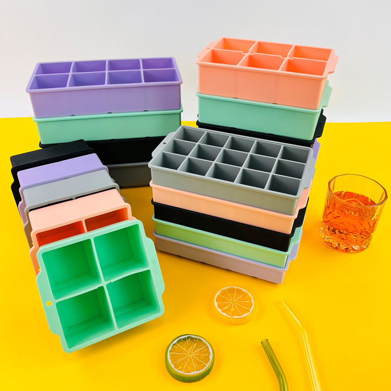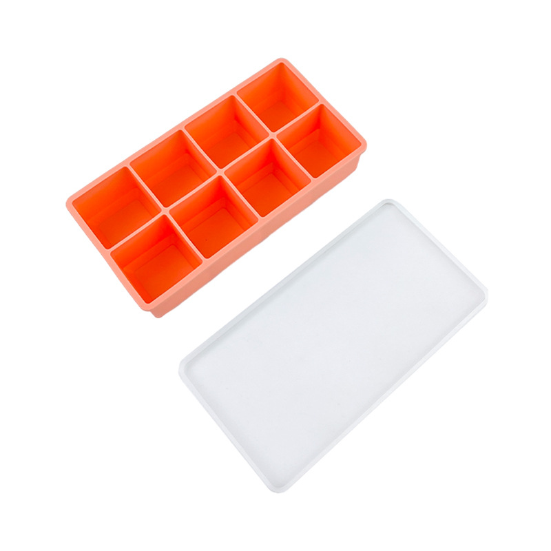 Strictly selected in stock 4-pack 6-pack 8-pack 15-pack square ice cube food grade silicone large ice cube mold ice box with cover