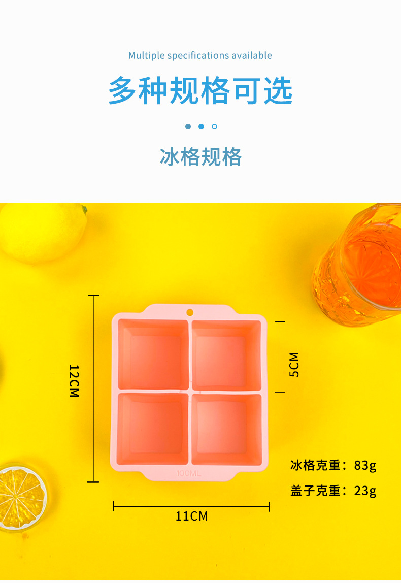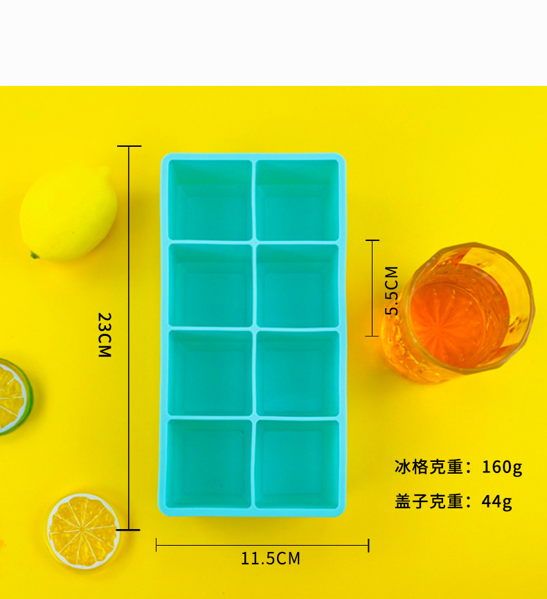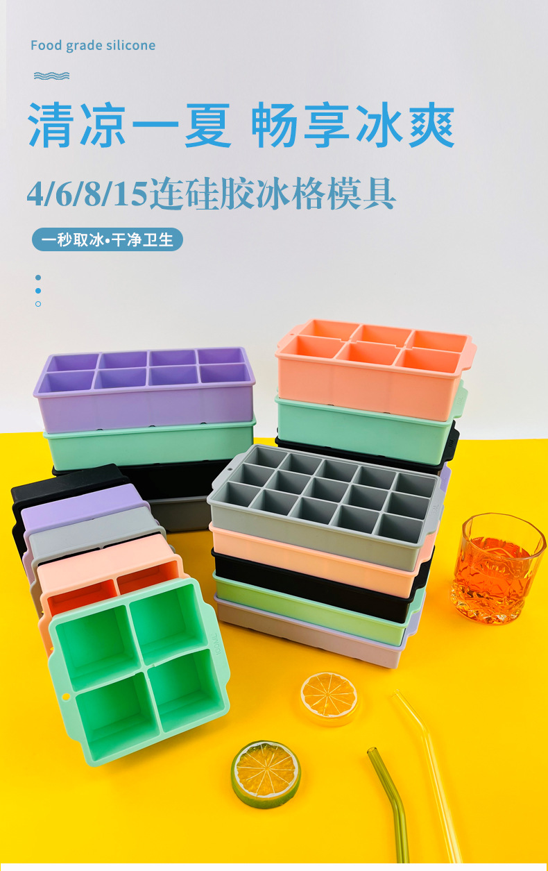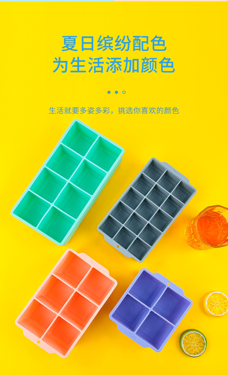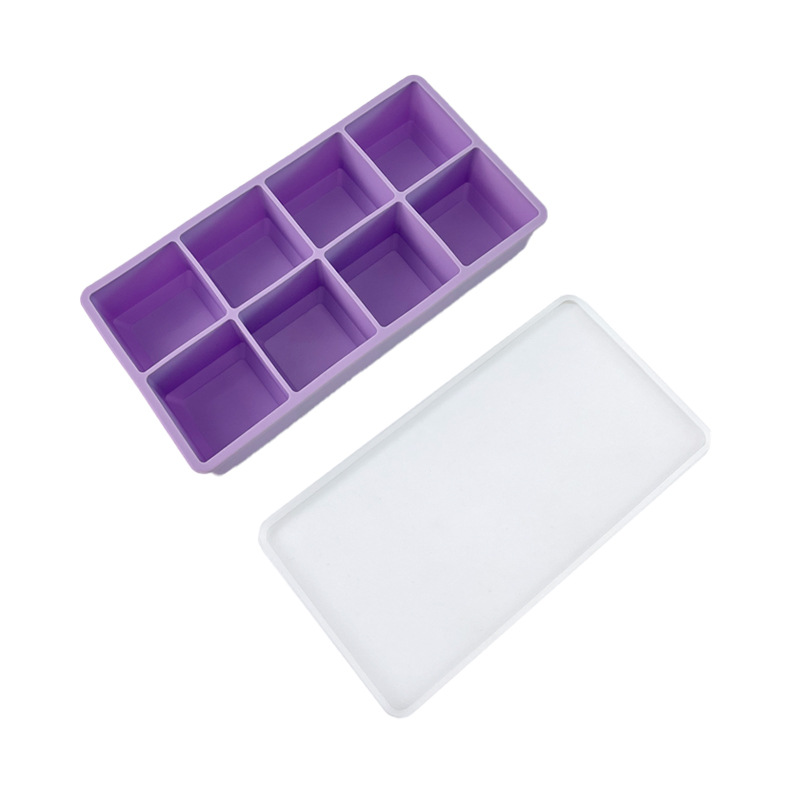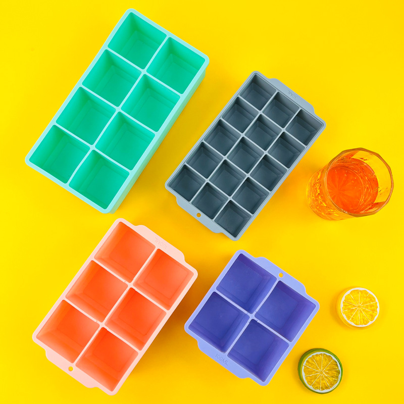 Strictly selected in stock 4-pack 6-pack 8-pack 15-pack square ice cube food grade silicone large ice cube mold ice box with cover