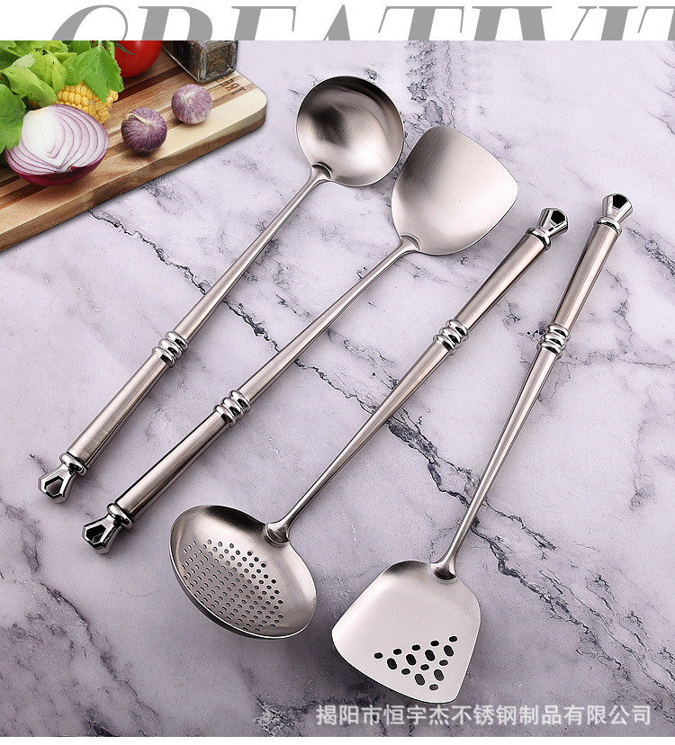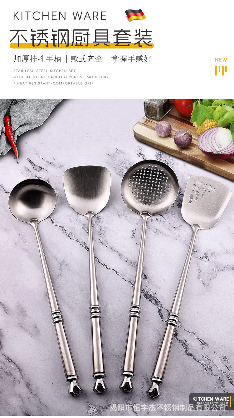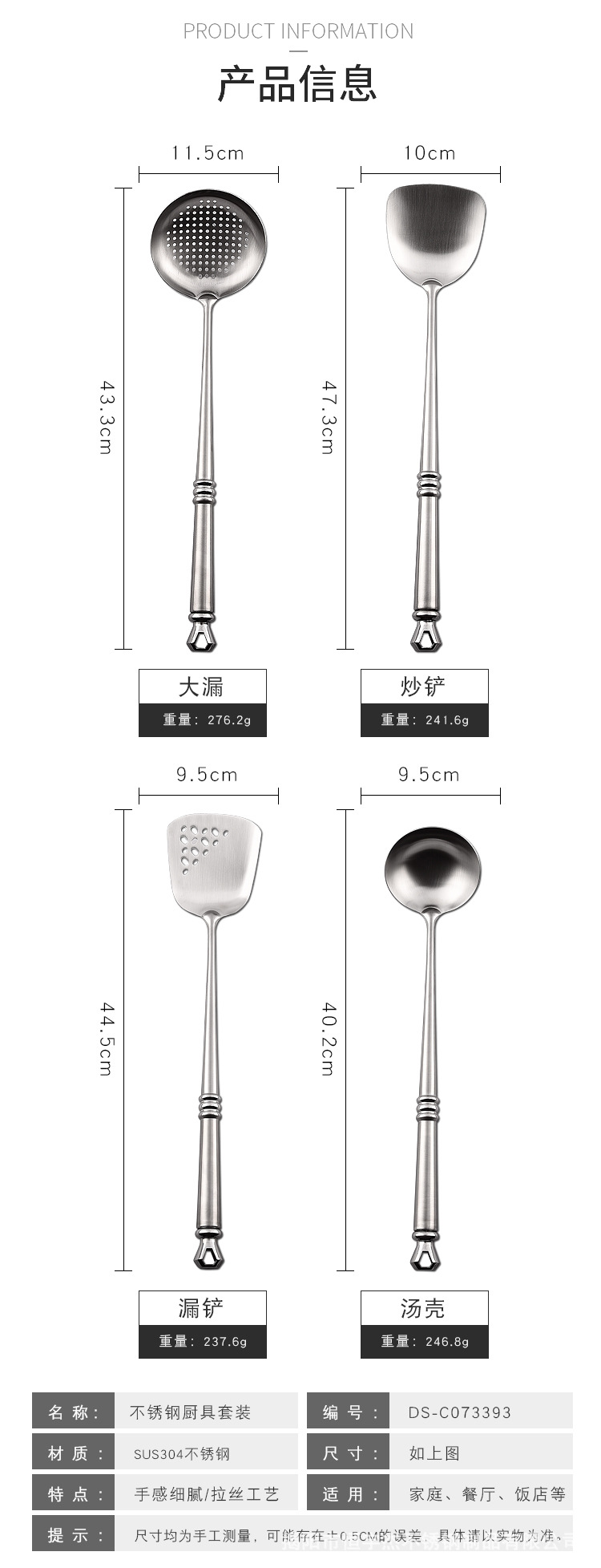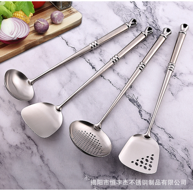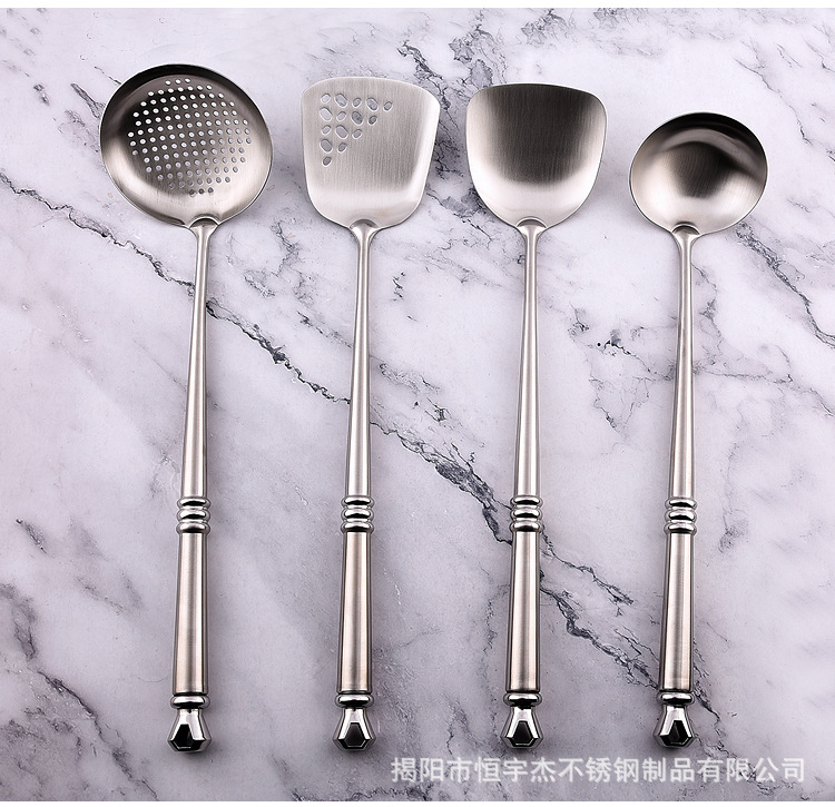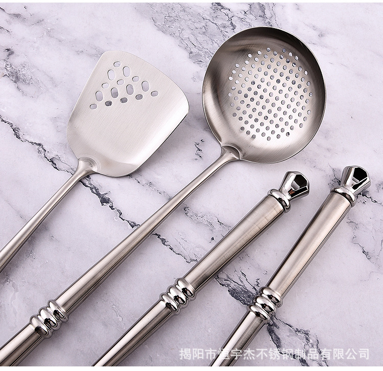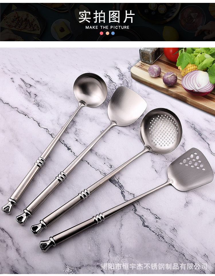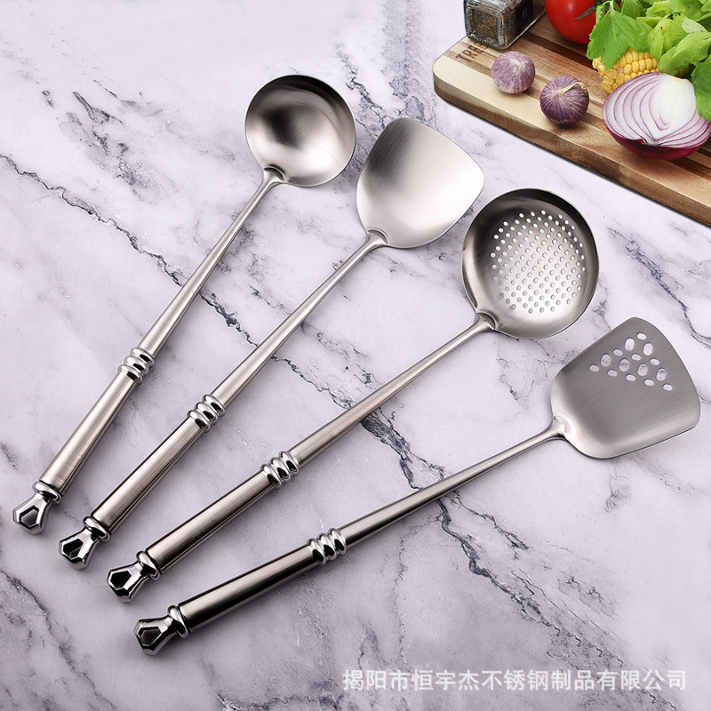 304 stainless steel new kitchen utensils spatula spoon suit extended diamond handle home kitchen cooking spatula spoon big leak