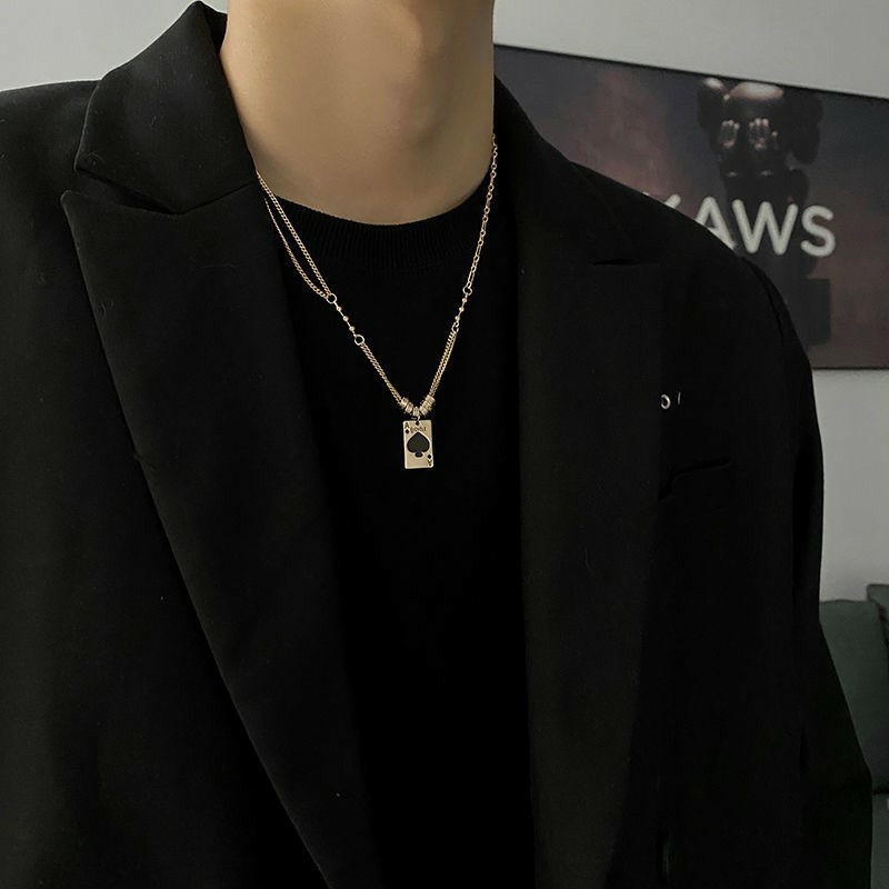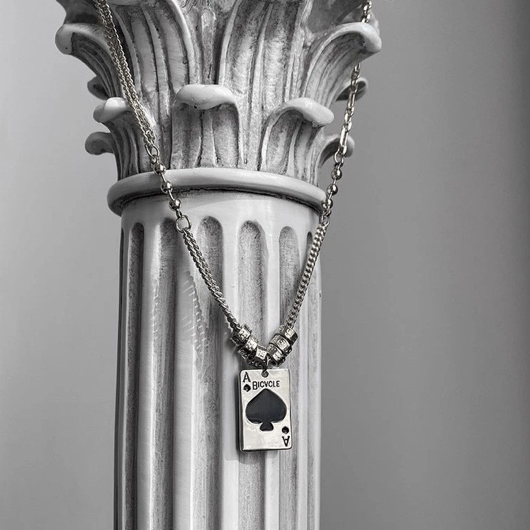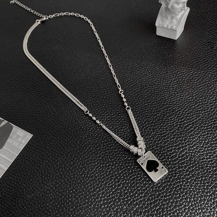 European and American Metal Playing Cards Spades Necklace for Men 2025 New Trendy Hip-Hop Disco Clavicle Chain Fashionable and Versatile